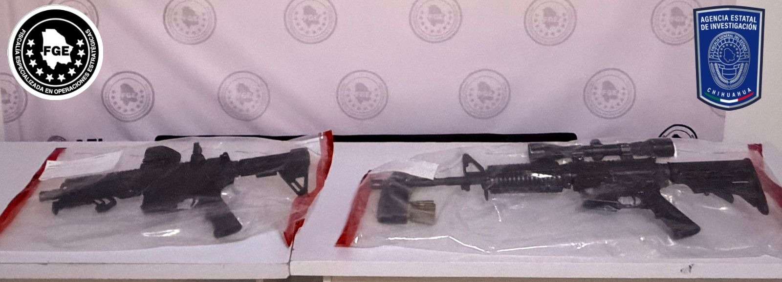 Además, en el lugar aseguraron un arma de fuego tipo fusil de color negro, con un cargador metálico color negro abastecido con 10 cartuchos útiles, así como un arma de fuego tipo fusil de color negro, las cuales fueron debidamente embaladas.