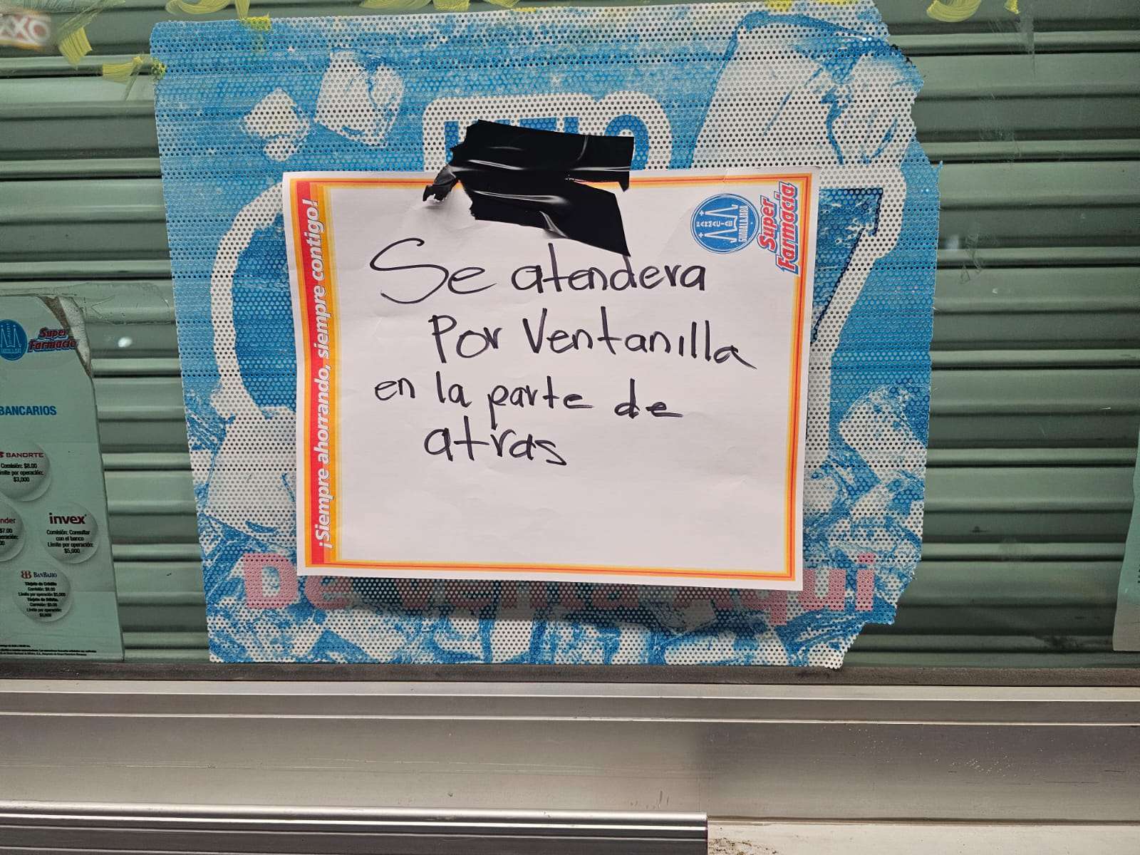 En el acceso principal fue colocado un aviso en el que se informaba a los usuarios que el servicio continuaría de manera restringida por motivos de seguridad, lo que generó inquietud entre quienes acudían a comprar medicamentos y diversos productos.
