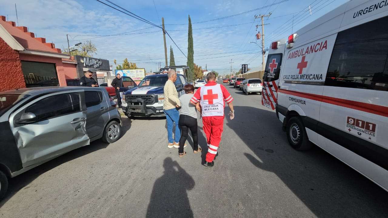 Chihuahua.- Una mujer adulta mayor resultó con golpes luego de un accidente registrado en el cruce de la calle Cosmos y Privada de Ciprés, en la colonia Satélite.