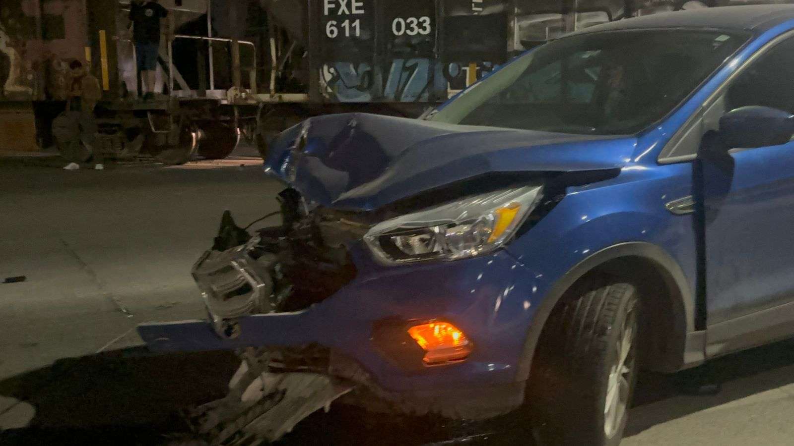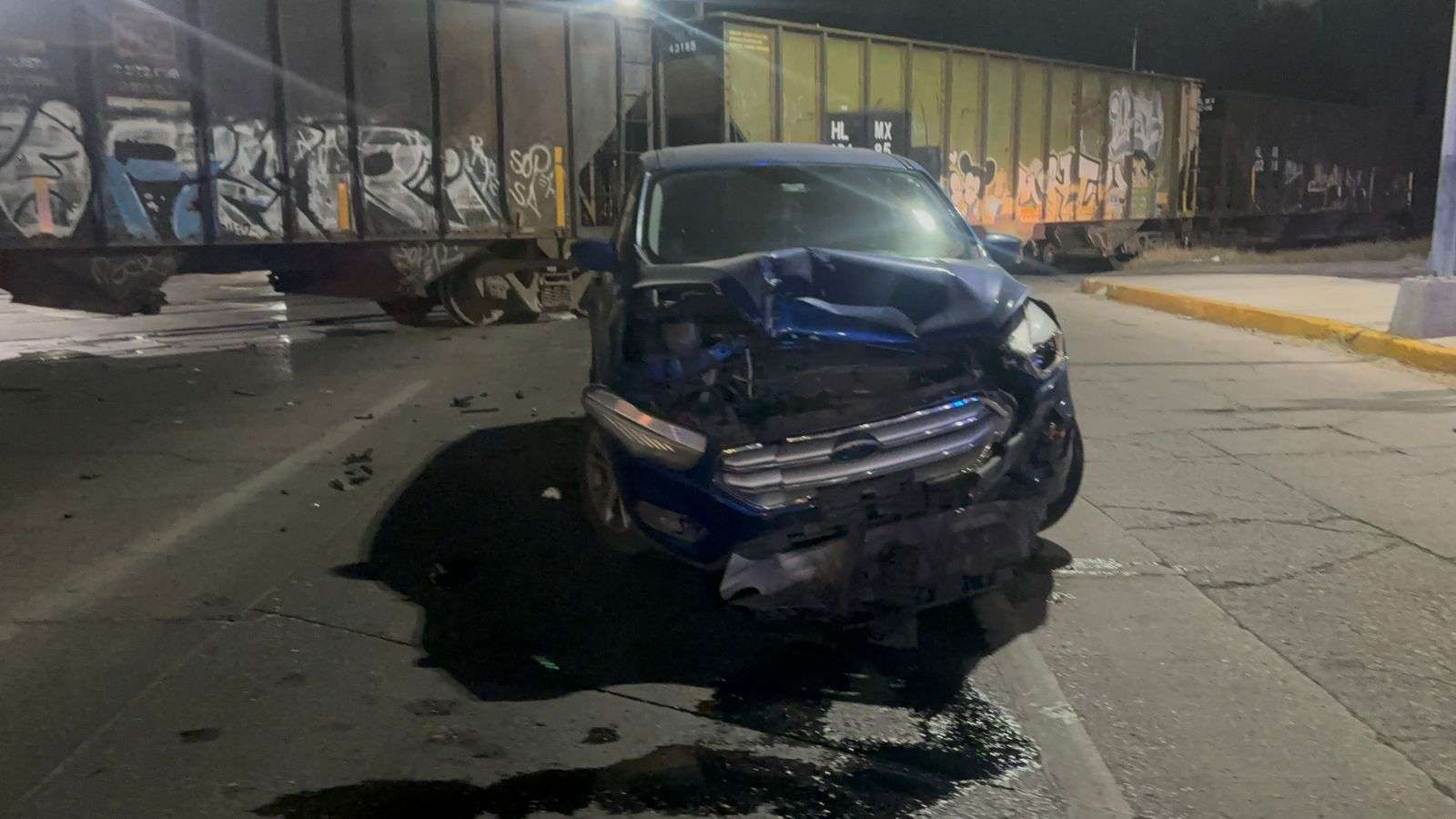 Chihuahua.- Una mujer de aproximadamente 30 a 35 años, impactó su camioneta Ford Escape al no percatarse de que el tren venía en circulación en la vías que pasan por la avenida de las Industrias.