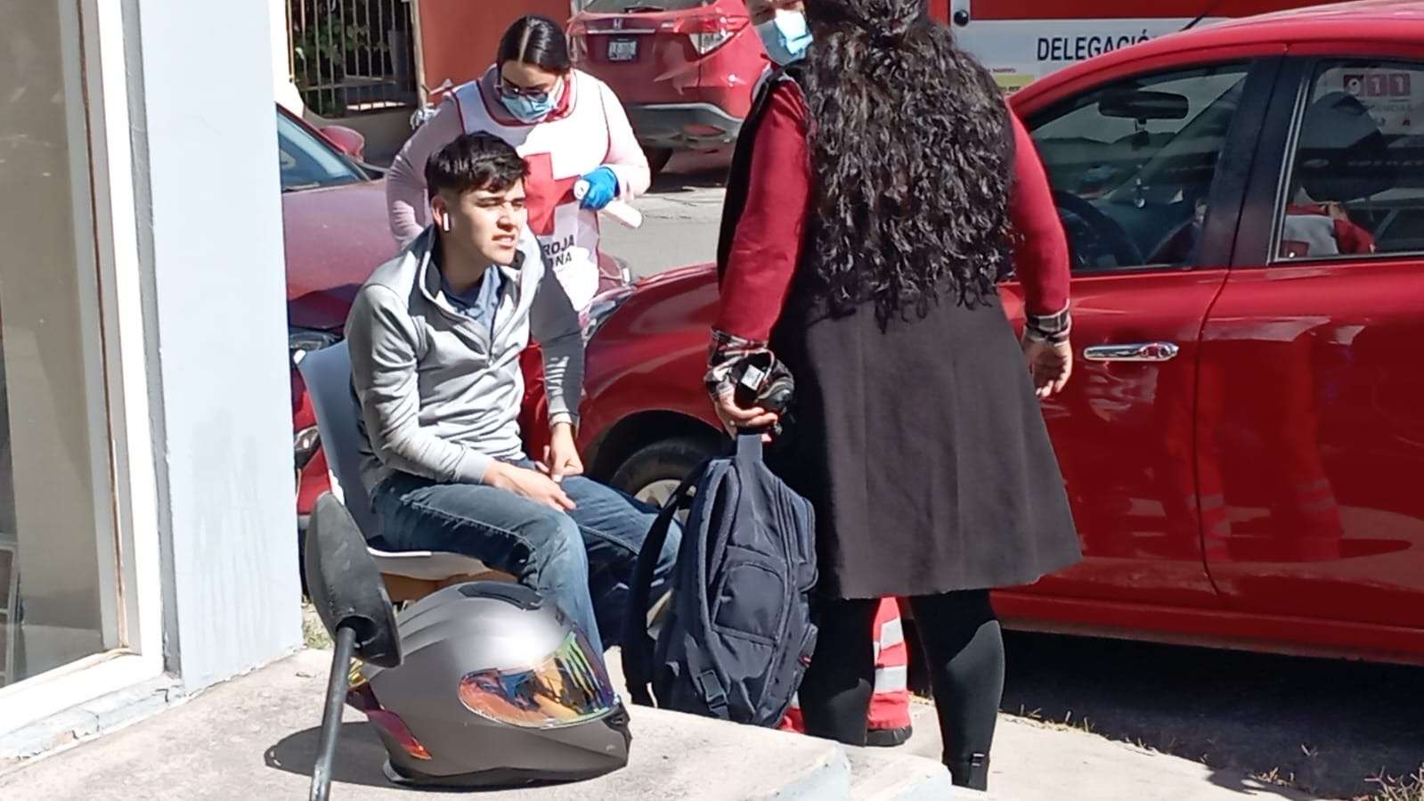 Paramédicos de la Cruz Roja acudieron al lugar para brindarle los primeros auxilios, inmovilizándole el brazo derecho antes de su valoración médica.
