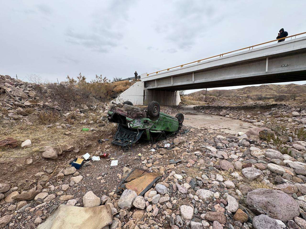 Chihuahua.- Dos personas resultaron lesionadas luego de un aparatoso accidente vial registrado a la altura del kilómetro 190 de la carretera Chihuahua–Delicias.