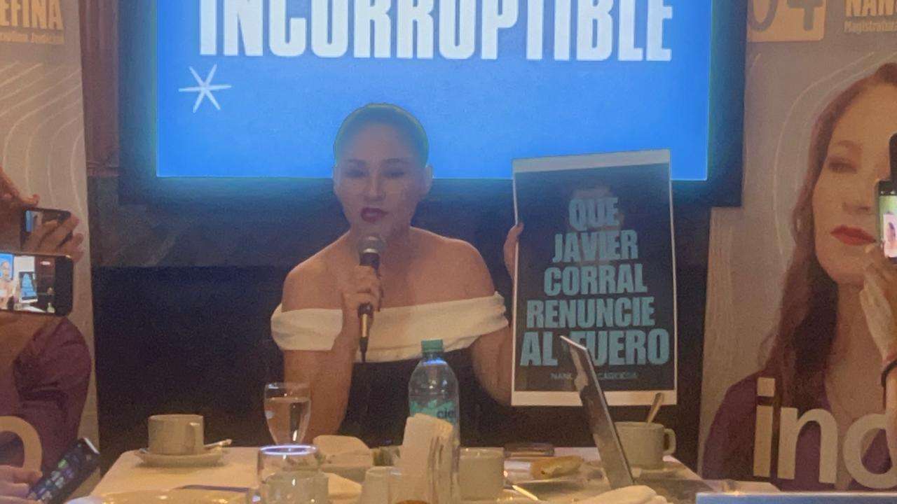Igualmente, lanzó un reto a Javier Corral: si él logra demostrar sus acusaciones, ella retirará su candidatura; pero si no lo hace, Escárcega le exigió que renuncie al fuero como senador.