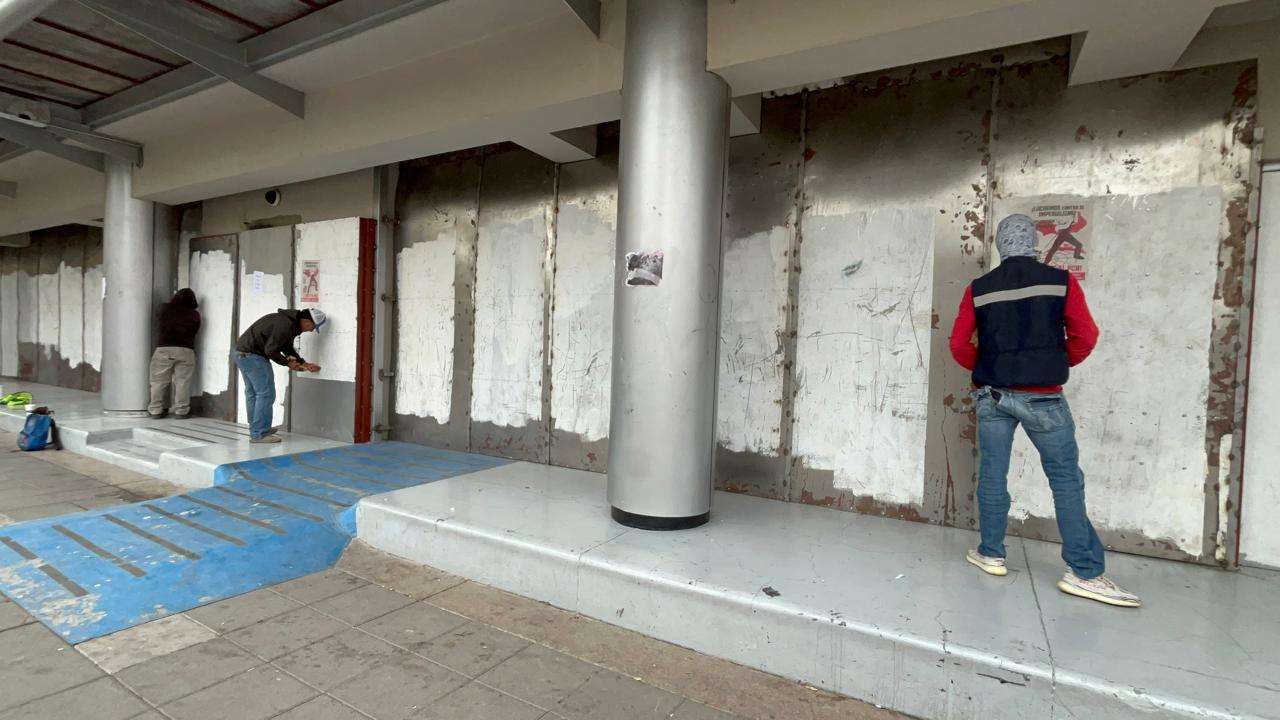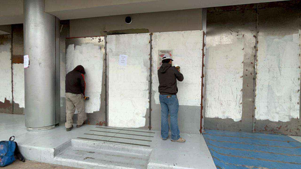 Chihuahua.- A primeras horas de este lunes, personal de mantenimiento y cuadrillas de limpieza iniciaron las labores para retirar las estructuras y placas de metal que resguardaron el edificio del Congreso del Estado durante las movilizaciones del Día Internacional de la Mujer.