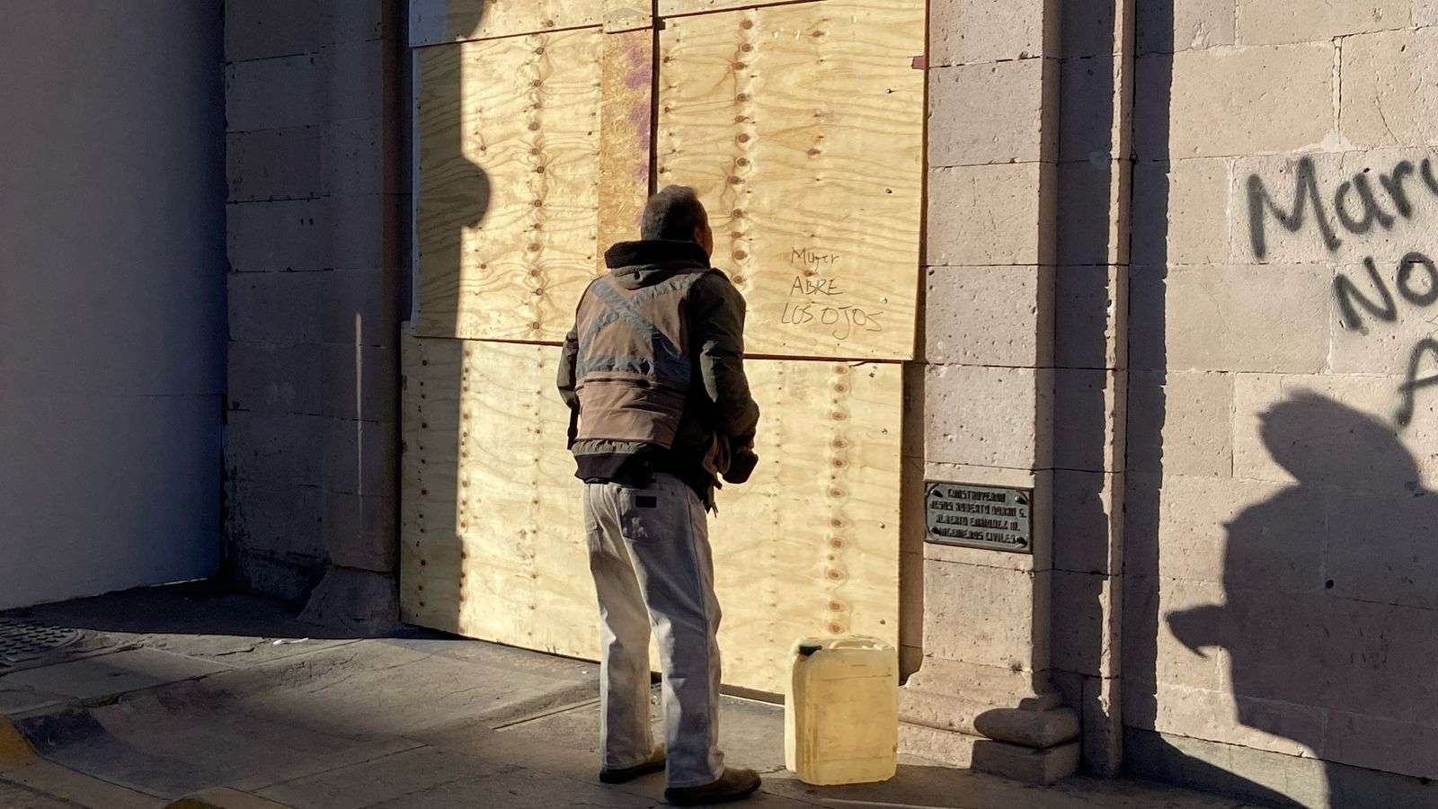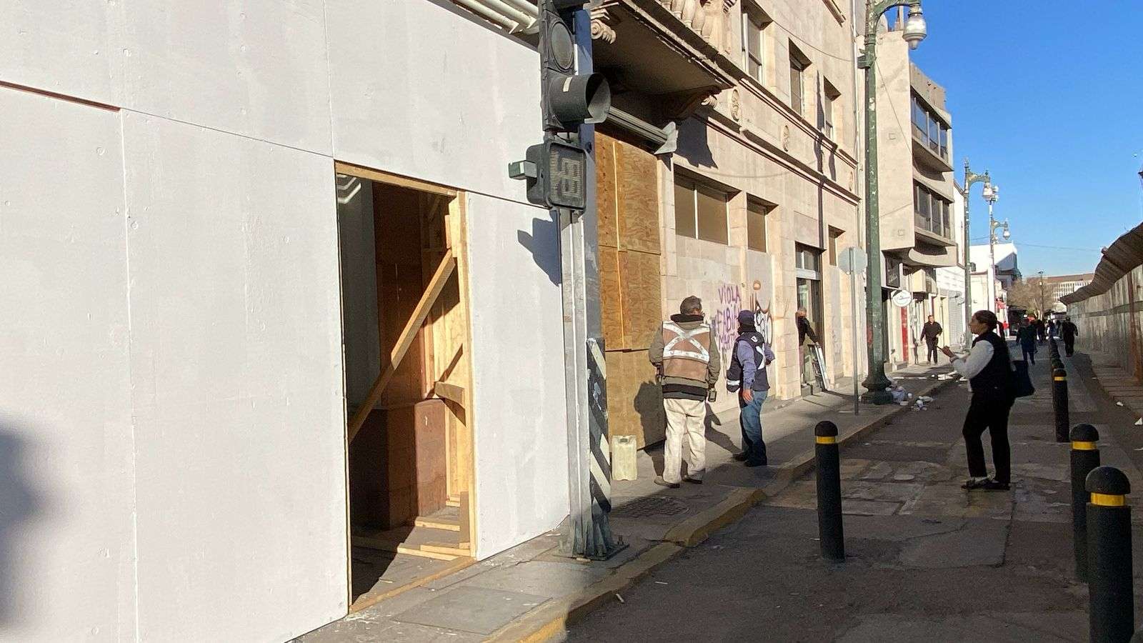 Chihuahua.- En el edificio del Registro Público de la Propiedad, una cuadrilla de trabajadores comenzó a retirar las placas de triplay que fueron instaladas para proteger el inmueble tras la marcha del 8-M.