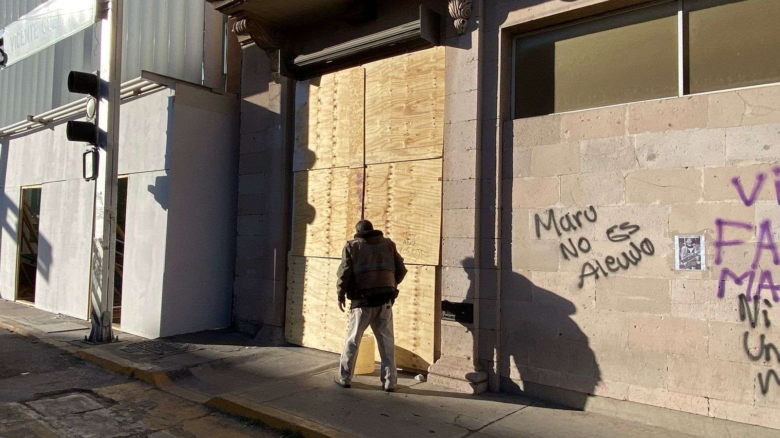Asimismo, se están retirando las placas de triplay y lámina que fueron colocadas en el edificio de la Secretaría de Desarrollo Municipal, para permitir el ingreso de los trabajadores.