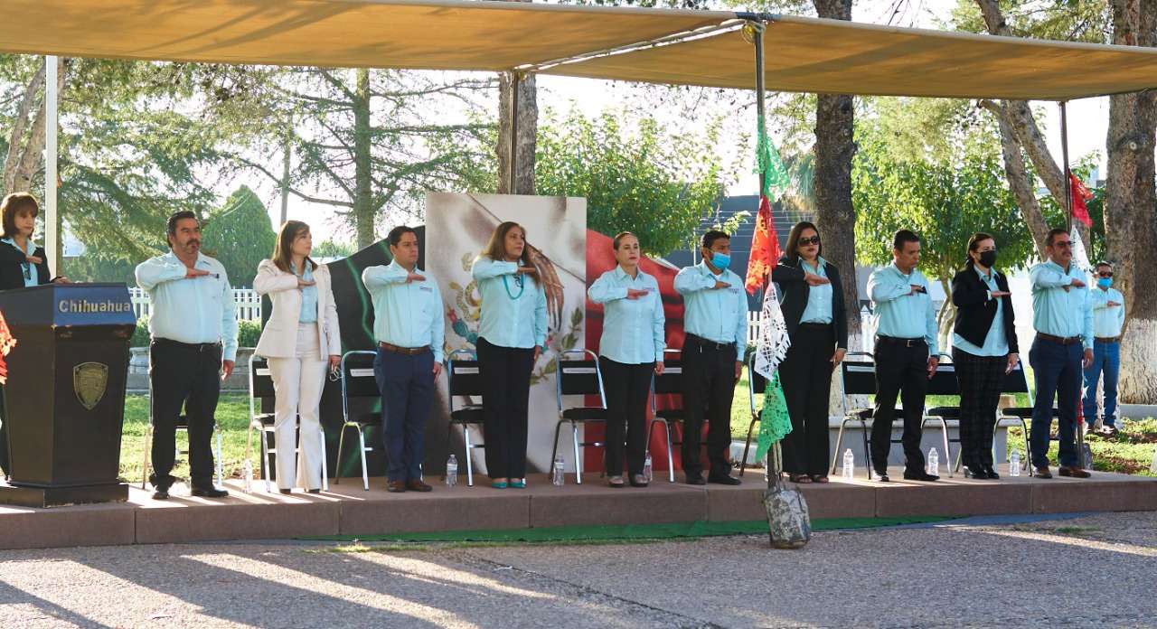 Chihuahua.- Luego de que los eventos cívicos fueran suspendidos por motivo de la contingencia sanitaria por COVID-19, en Servicios Educativos del Estado de Chihuahua (SEECH) se retomó la tradición de los honores a la bandera en sus instalaciones con motivo de las fiestas patrias.