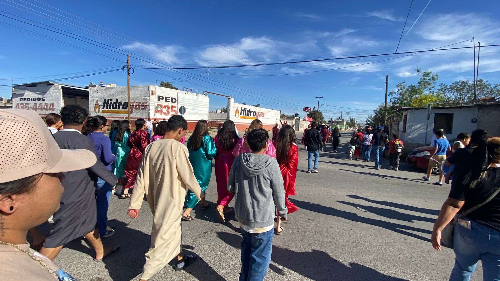 El recorrido estuvo acompañado por oraciones y cantos dirigidos por el párroco Jesús de Luna Martínez, quien encabezó la procesión junto a decenas de familias que se sumaron al acto religioso.