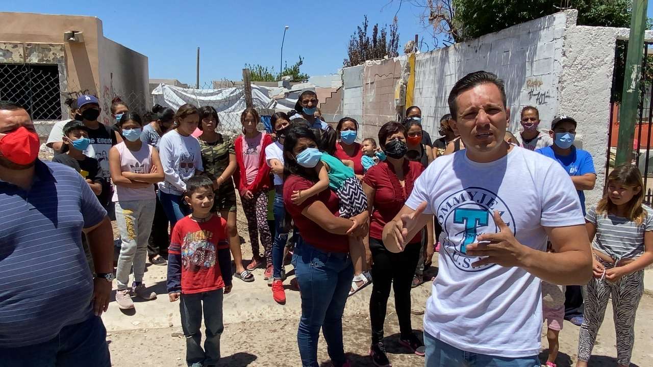 Chihuahua.- Activistas del grupo Hogar Para Todos y vecinos de la colonia Punta Oriente, se manifestaron en contra de los candidatos por el Partido Movimiento Ciudadano, Miguel Riggs y Alfredo Lozoya, quienes demolieron una vivienda por presuntamente ser un picadero, sin embargo, dijeron que los políticos se enojaron porque los vecinos no recibieron propaganda política.