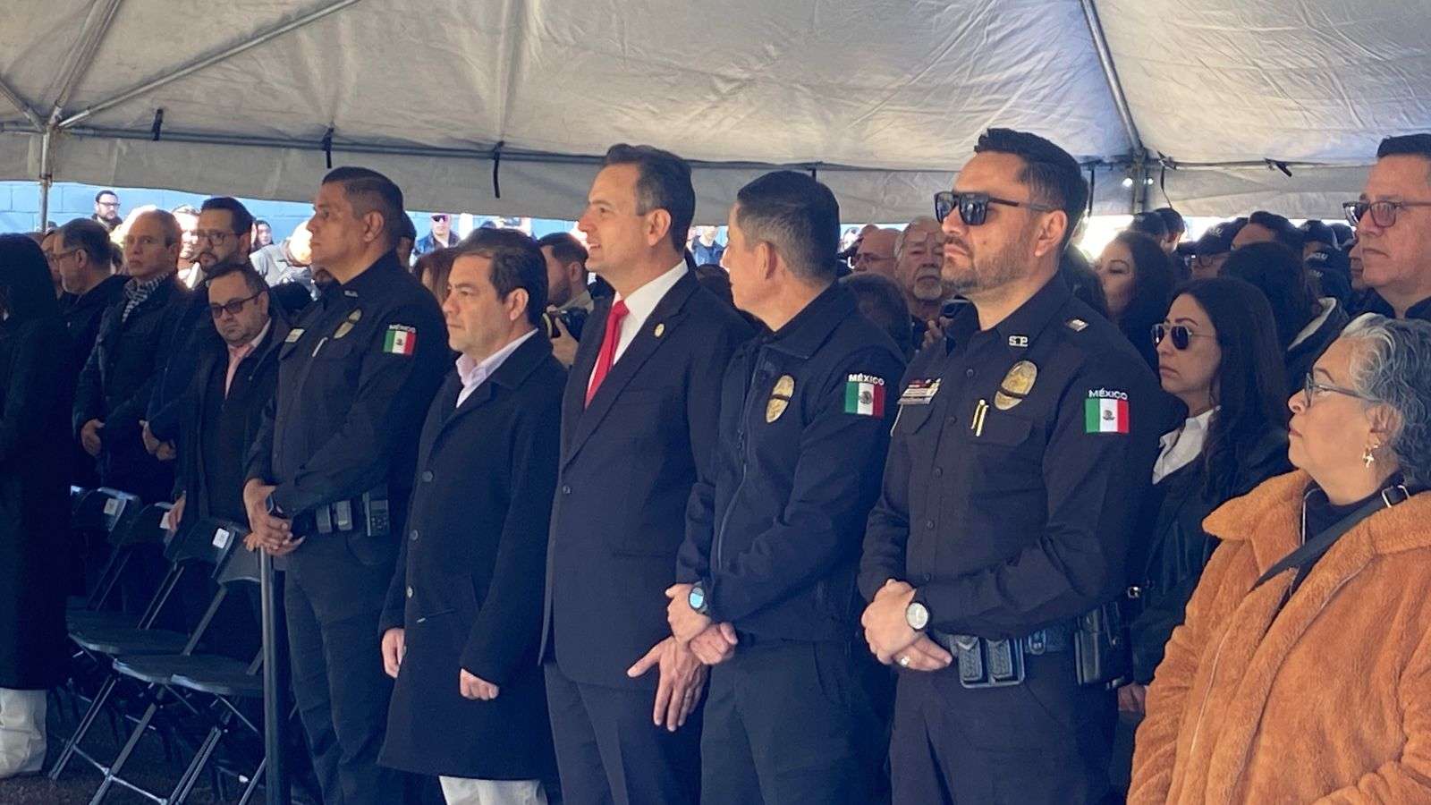 Los honores fueron acompañados por la banda de guerra de la Policía Municipal con el toque de silencio; asimismo, el Equipo de Proyectos Especiales realizó disparos de salva e hizo sonar las sirenas de las patrullas.
