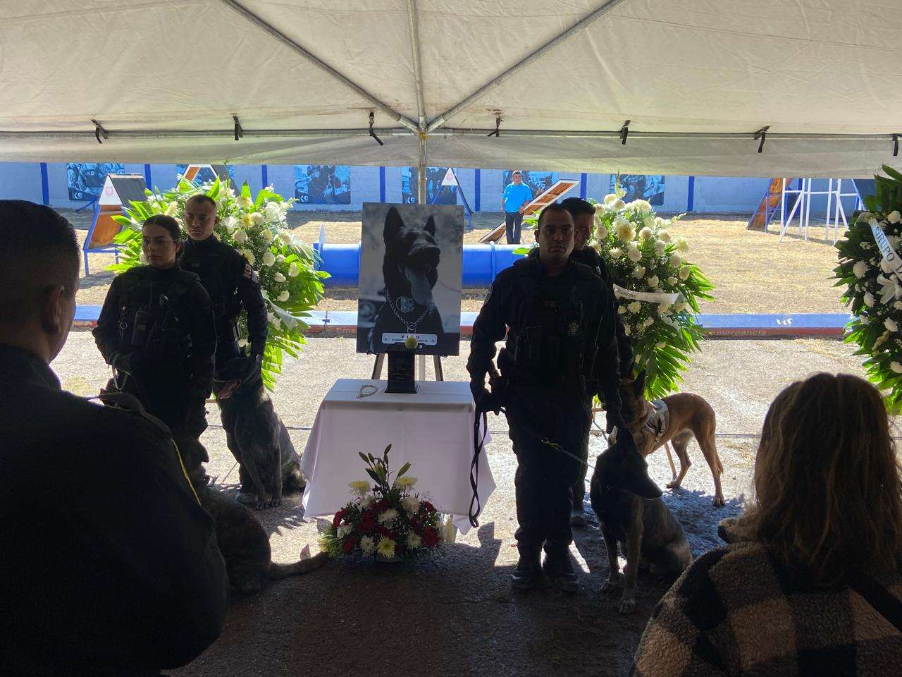 La primera guardia de honor fue realizada por el escuadrón motorizado de la Policía Municipal, y los elementos caninos con sus manejadores también rindieron honores a su compañero.