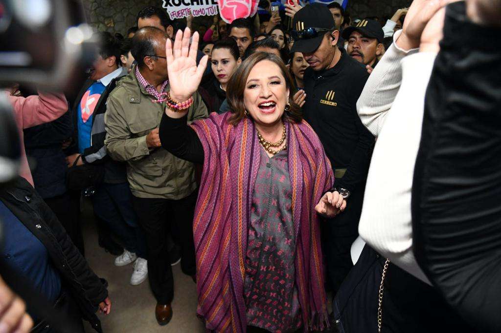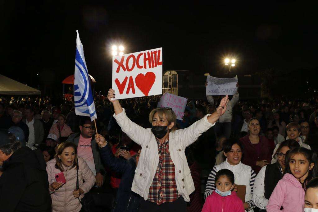 Luego de lo cual la candidata Xóchitl Gálvez tomó la palabra para dirigirse a los miles de asistentes simpatizantes del partido revolucionario institucional, partido de la revolución democrática y partido acción nacional.