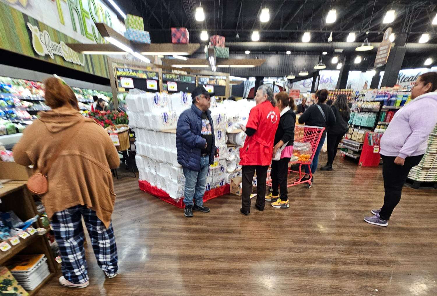 Se podía ver a muchas personas llenando sus carritos con alimentos como tamales, piñatas, frutas para el ponche, y otros ingredientes típicos de las festividades.