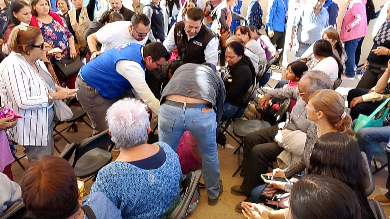 Chihuahua.- Una mujer de entre 45 y 50 años se desplomó esta mañana mientras la gobernadora Maru Campos Galván ofrecía un discurso durante el arranque de obras de agua potable en la colonia Vista Hermosa.