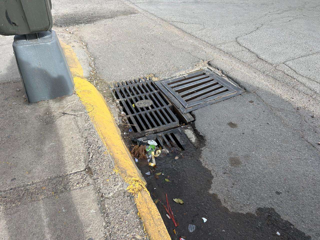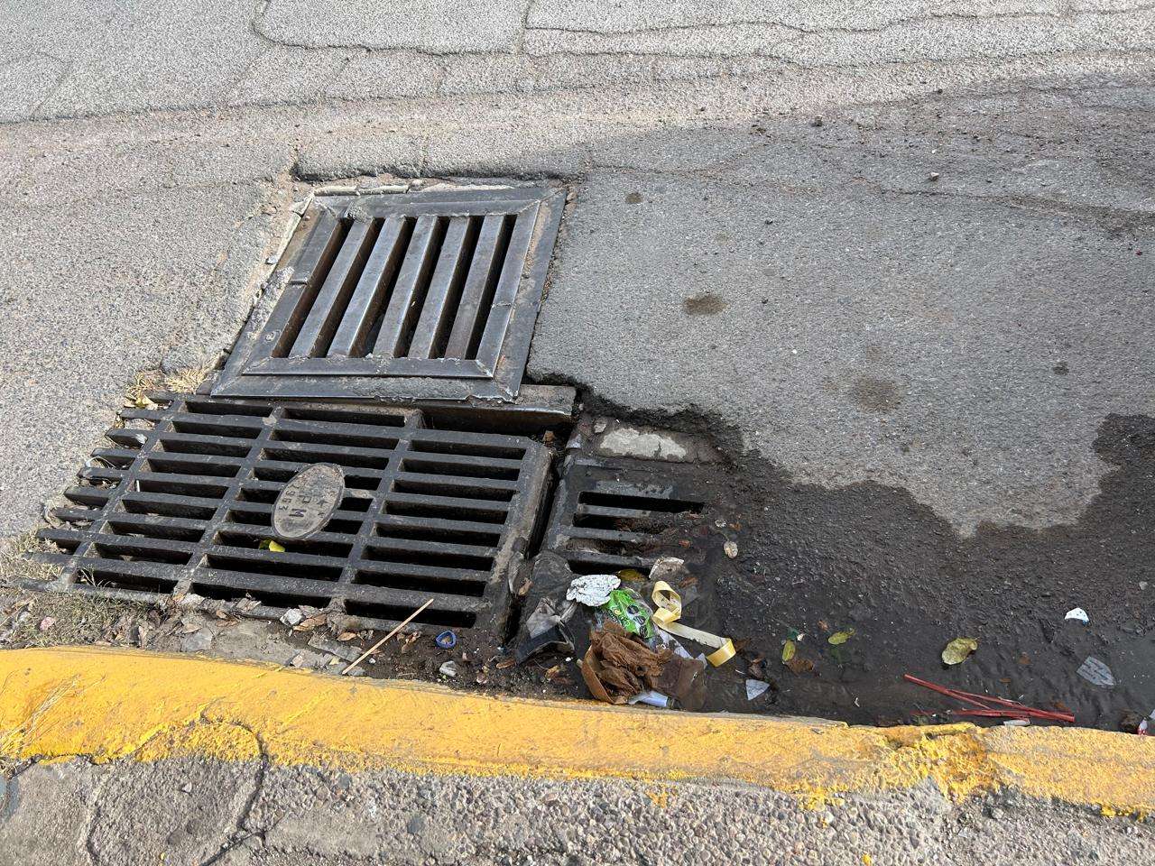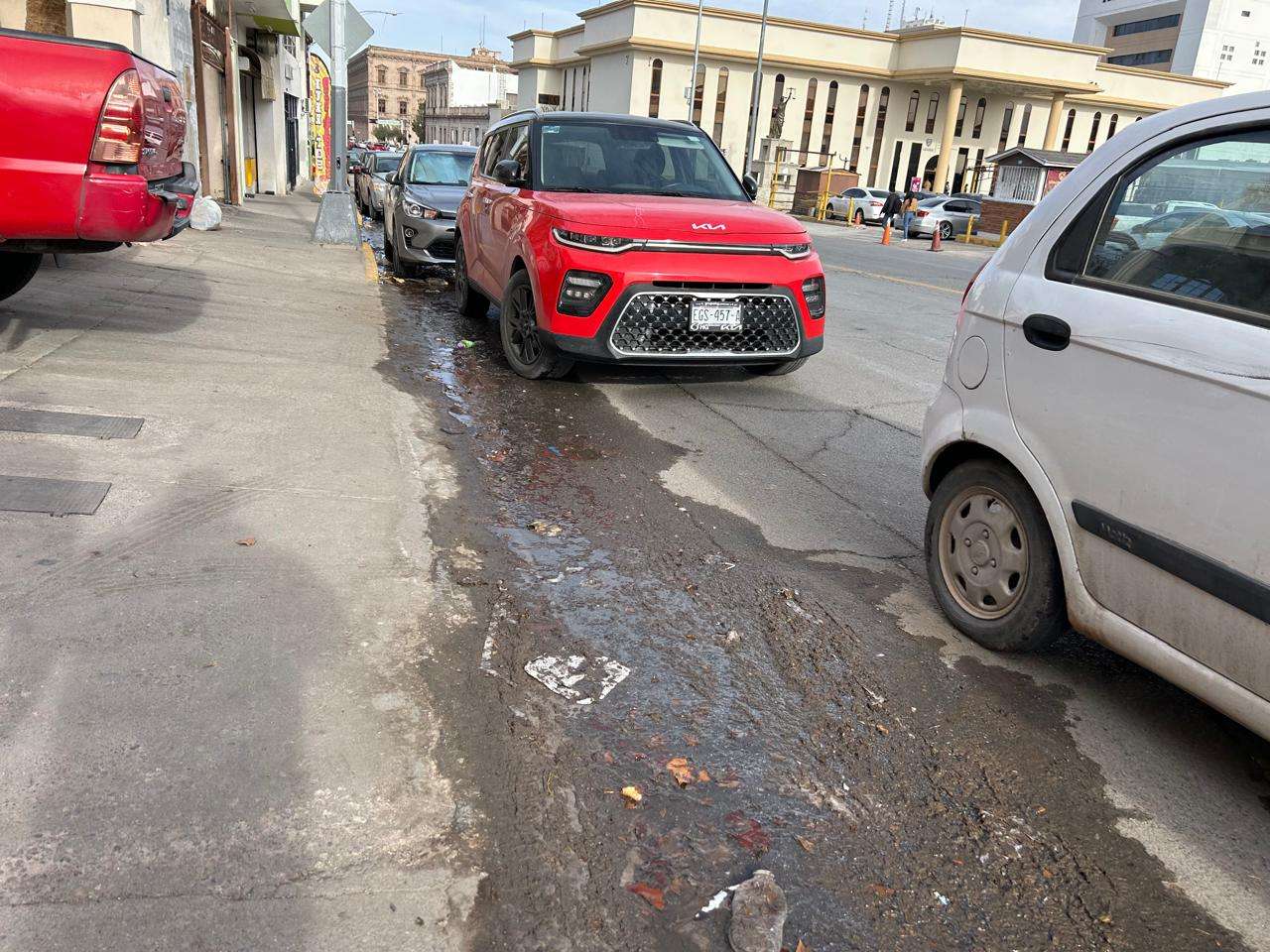 Chihuahua.- Miles de litros de agua potable se desperdician diariamente debido a una fuga que se filtra por la calle en pleno centro de la ciudad.
