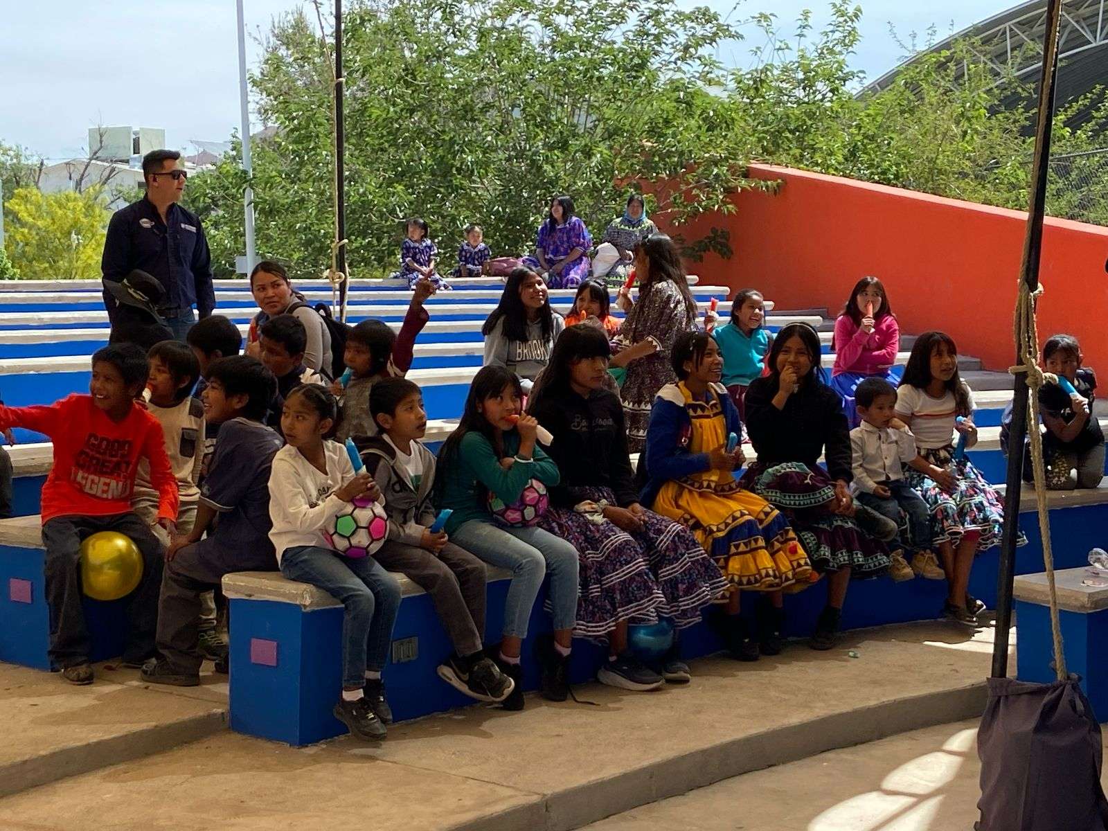 Fueron dos mil niños de la etnia de los municipios de Aquiles Serdan, Aldama, Meoqui y Chihuahua, que están acompañados de algunas madres de familia y gobernadoras de los asentamientos rarámuris.