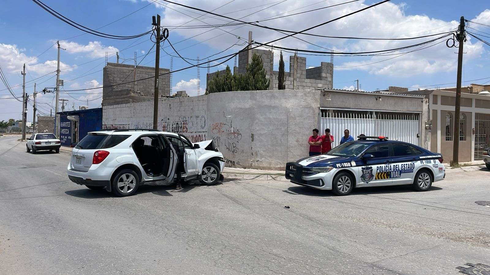 Chihuahua.- El conductor de una camioneta Chevrolet Equinox perdió el control del vehículo y se impactó de frente contra la barda de un domicilio, en el cruce de las calles Parque de la Teja y avenida Paseos del Pastizal, en la colonia Jardines de Oriente.