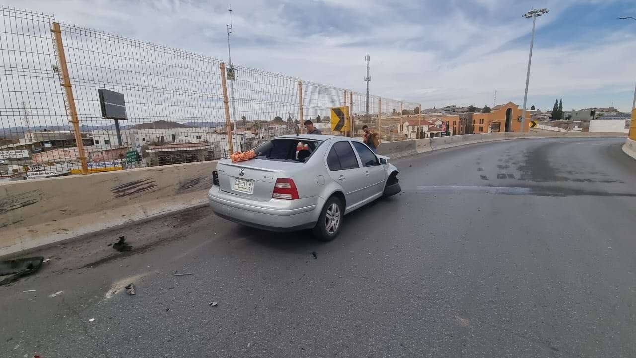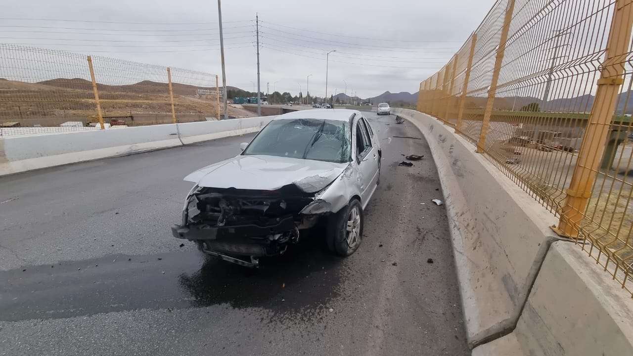 Chihuahua.- Un accidente ocurrió en la gaza que conecta el periférico R. Almada con la avenida Silvestre Terrazas, a la altura del puente, dejando como saldo solo daños materiales y sin personas lesionadas.