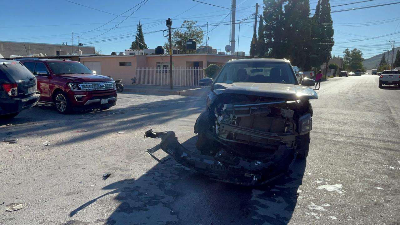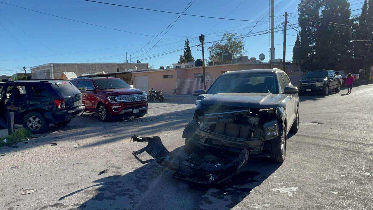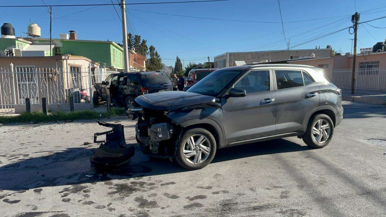 Chihuahua.- Cuantiosos daños materiales se registraron en la colonia Rosario, luego de un fuerte accidente vehicular en el cruce de las calles 50 e Ignacio Urquidi.