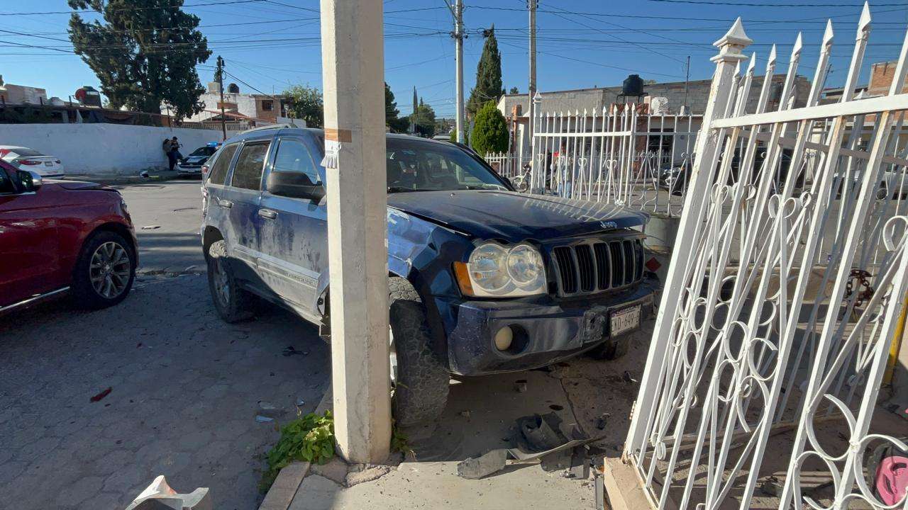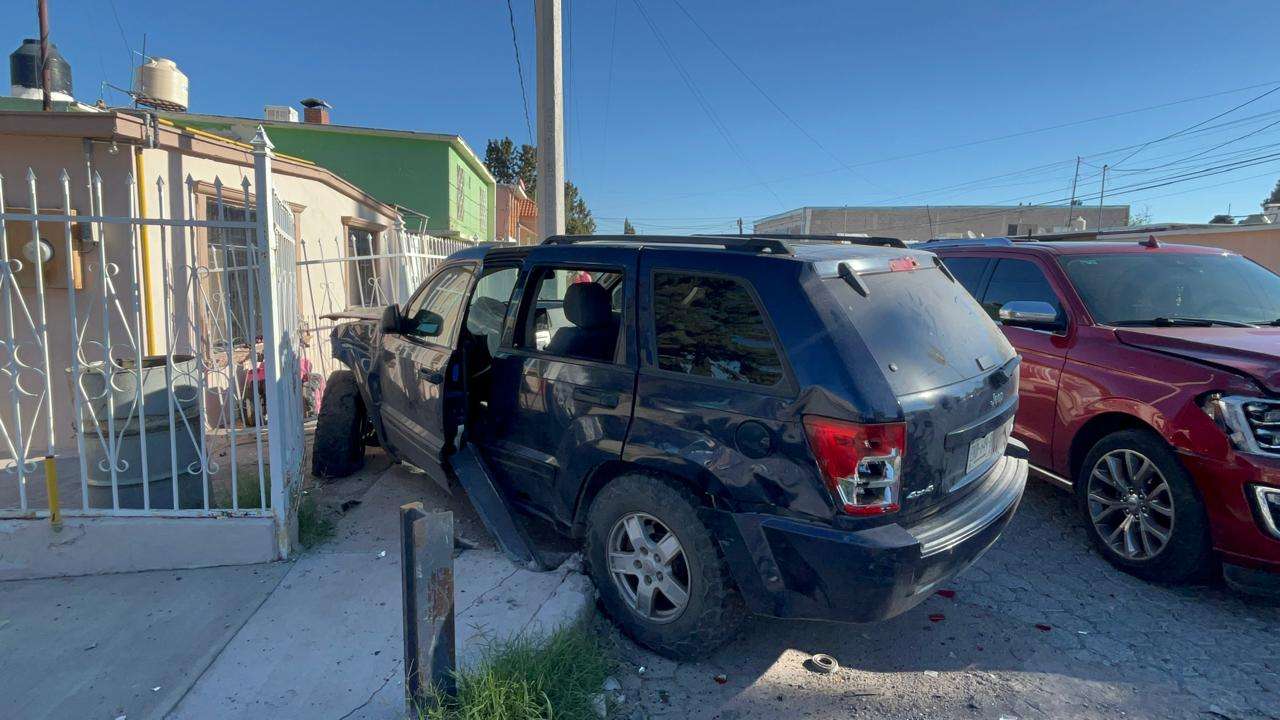Finalmente, el Jeep terminó estrellándose contra un domicilio particular, dañando considerablemente su barandal.