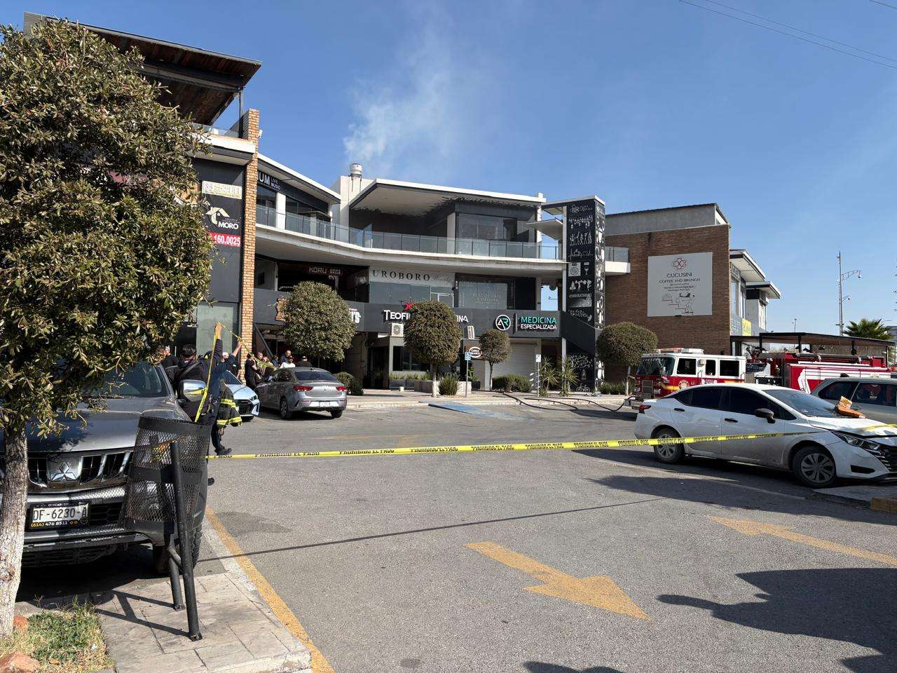 Chihuahua.- Se registró un incendio en el bar Teofilitos, ubicado en la intersección de las avenidas Cantera y Río de Janeiro, dentro de la plaza Rayuela.