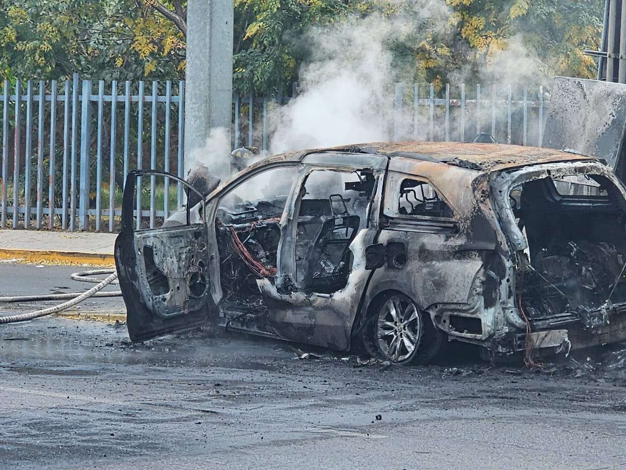Chihuahua.– Un accidente registrado en la avenida Teófilo Borunda Sur, a la altura del cruce con la avenida Colón, dejó como saldo la pérdida total de una camioneta Toyota Sienna 2025, luego de que se incendiara tras impactarse contra un poste de cámaras de seguridad pública.