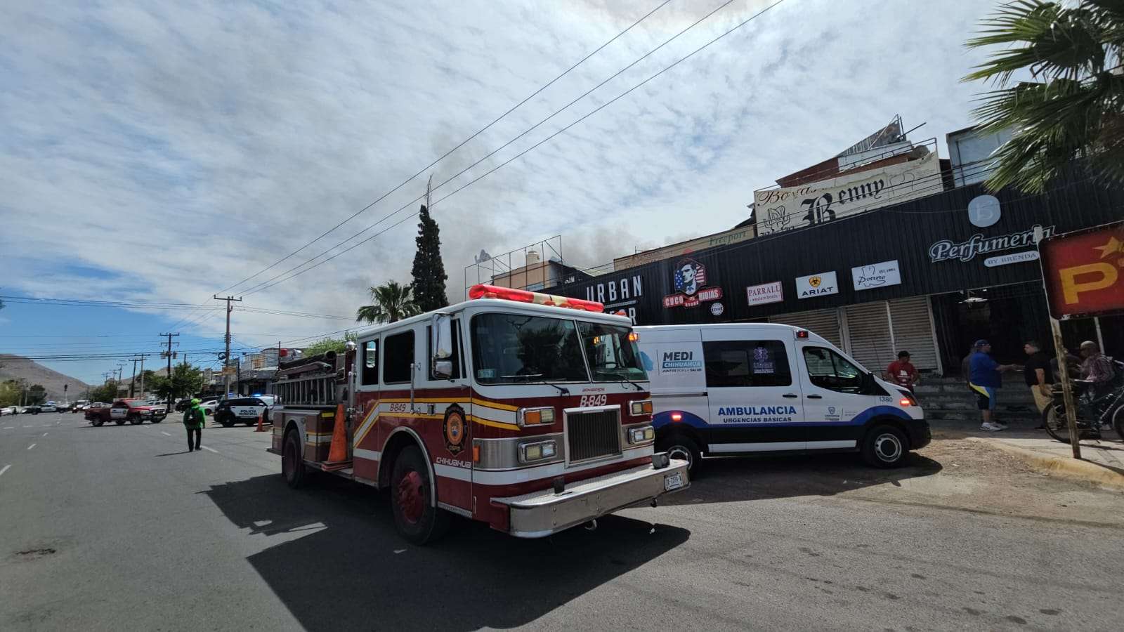 Chihuahua.- Un fuerte incendio se registró en un local de ropa del centro comercial El Pasito, ubicado sobre la avenida Juárez y calle 27, en la colonia Centro, lo que generó una intensa movilización de corporaciones de emergencia.