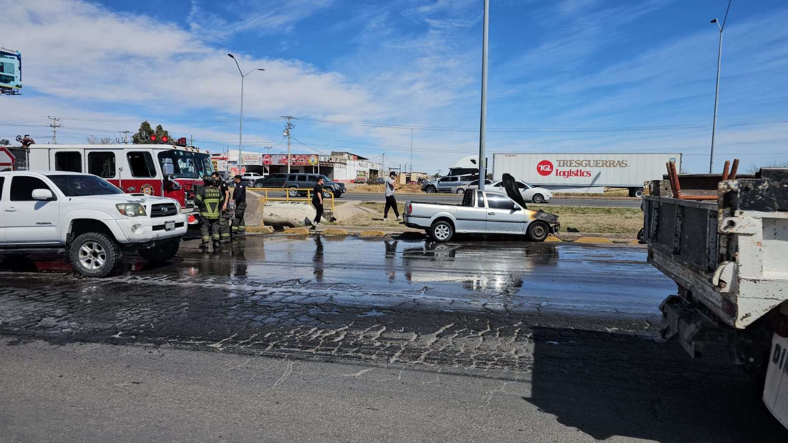 Elementos del Cuerpo de Bomberos acudieron de inmediato al lugar y lograron sofocar las llamas, con apoyo de agentes de la Policía Municipal, quienes brindaron seguridad perimetral. Del reporte y control del tráfico se hicieron cargo elementos de la Policía Vial.
