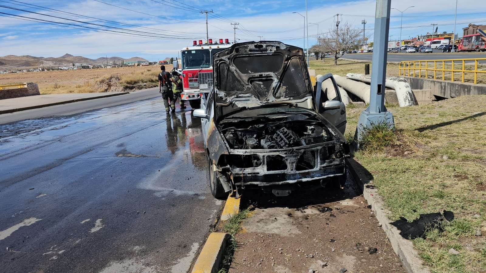 Chihuahua.– Un vehículo se incendió cuando circulaba sobre la avenida Tecnológico, en sentido de norte a sur, antes de llegar al cruce con Circuito Universitario.