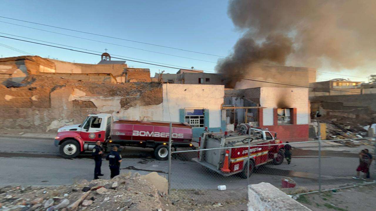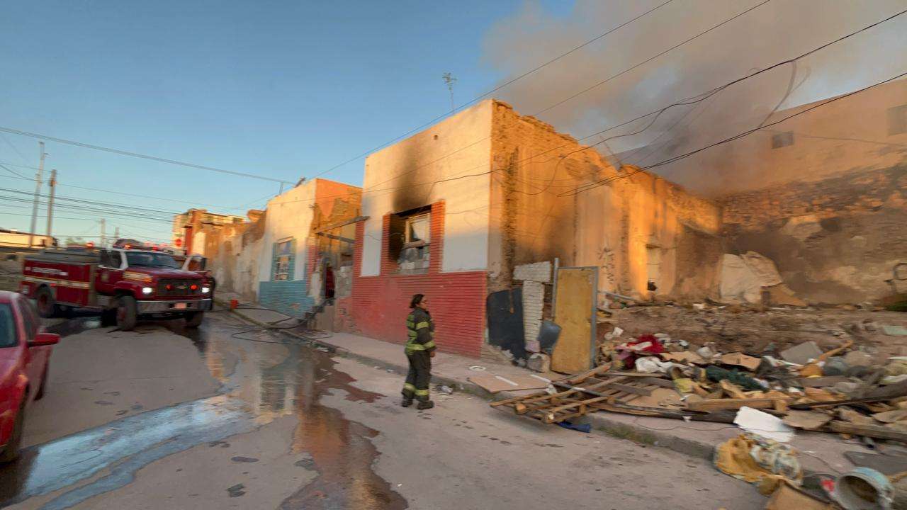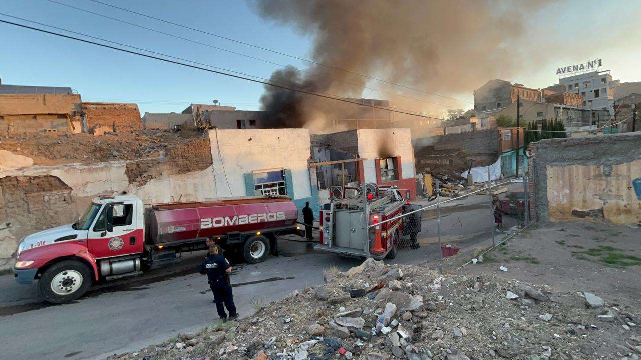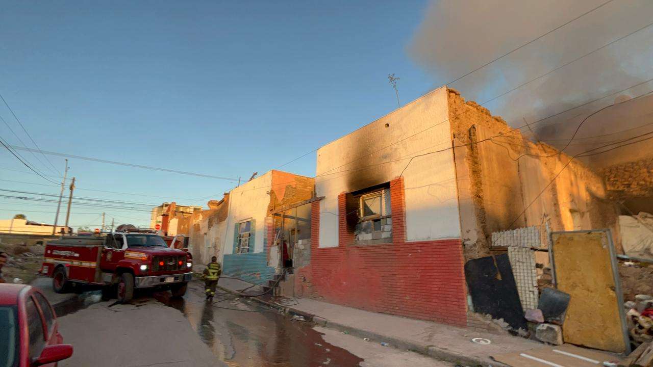 Chihuahua.- Un fuerte incendio consumió este sábado un domicilio habilitado como punto de reunión para el consumo de sustancias ilícitas, conocido localmente como "picadero", ubicado sobre la calle Privada de J. Eligio Muñoz, casi esquina con la avenida Tecnológico, en la colonia Santo Niño.
