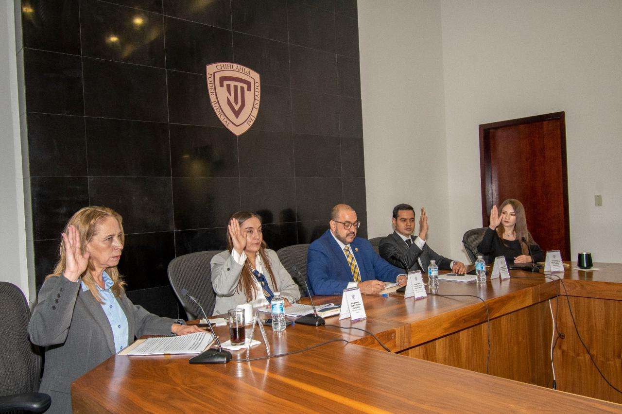 Chihuahua.- Se realizó la histórica primera sesión del Tribunal de Disciplina Judicial en la cual fue declarado formalmente instalado el pleno de este con sus cinco integrantes: Francisco Javier Acosta Molina, Presidente; Luis Daniel Meza González; Jazmín Yadira Alanís Reza, Yadira Anette Gramer Quiñonez y Nancy Josefina Escárcega Valenzuela.