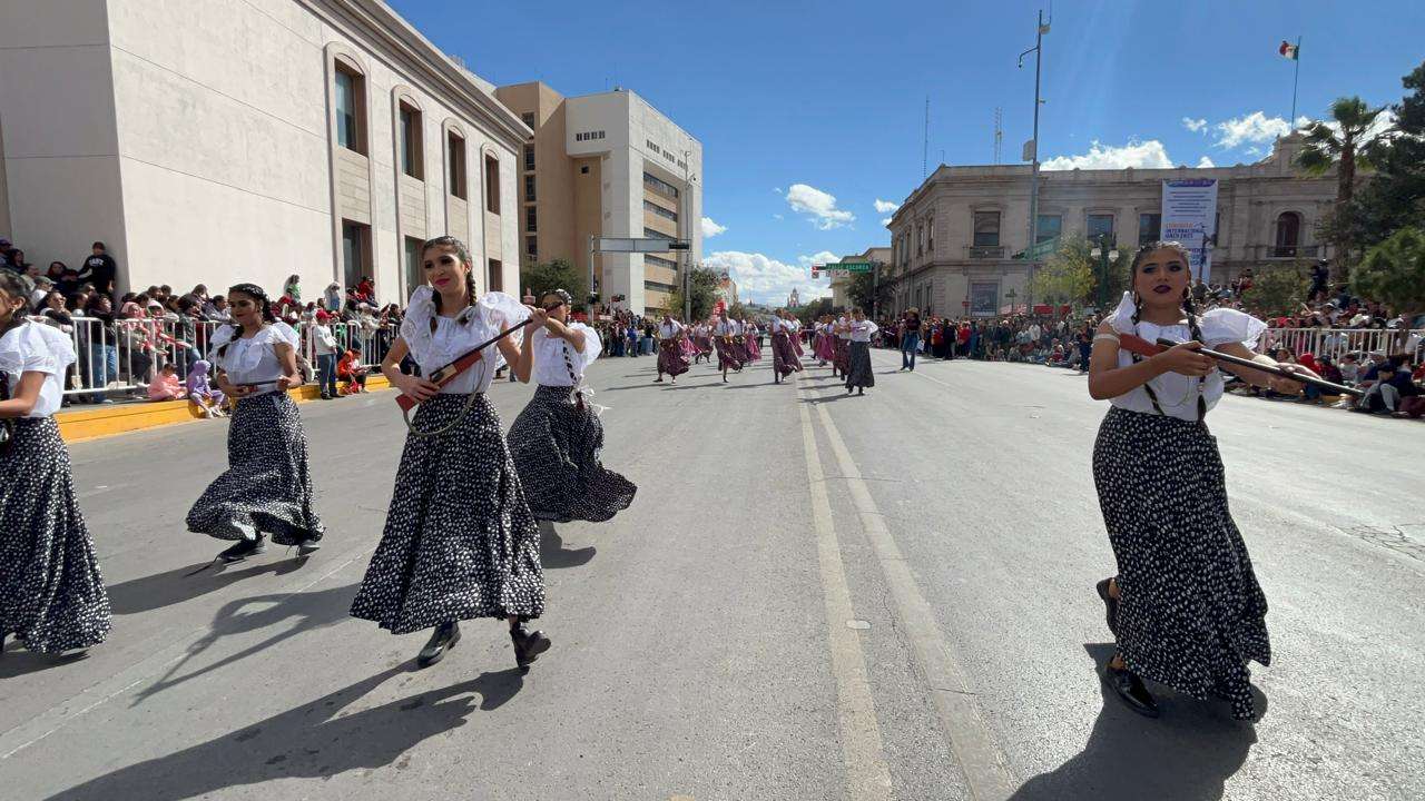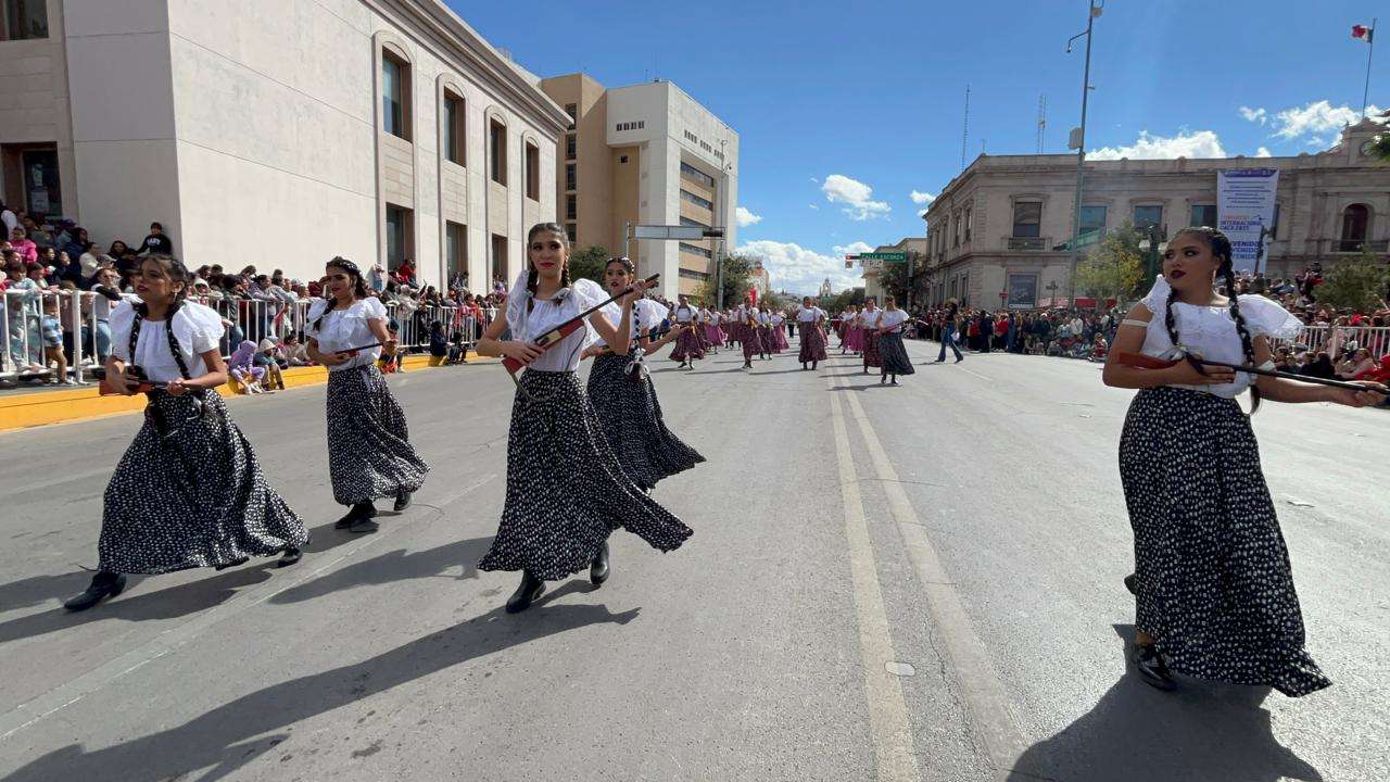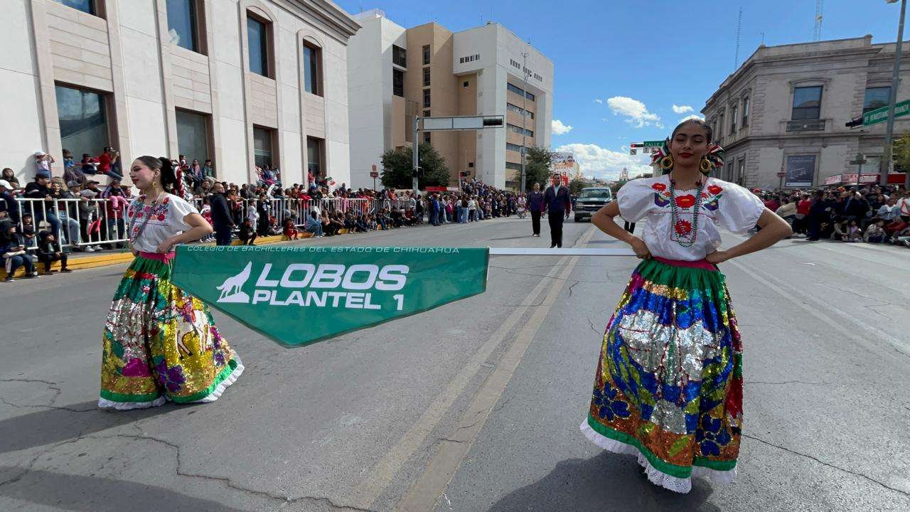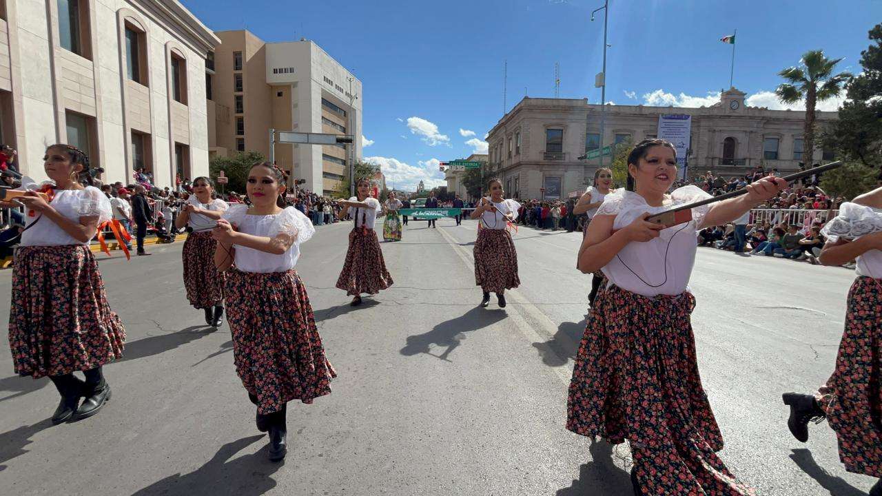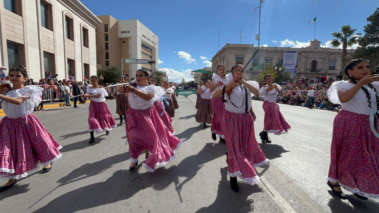 Chihuahua.- Diversas instituciones educativas participaron en el desfile con tablas rítmicas y bailables conmemorativos a la Revolución Mexicana.