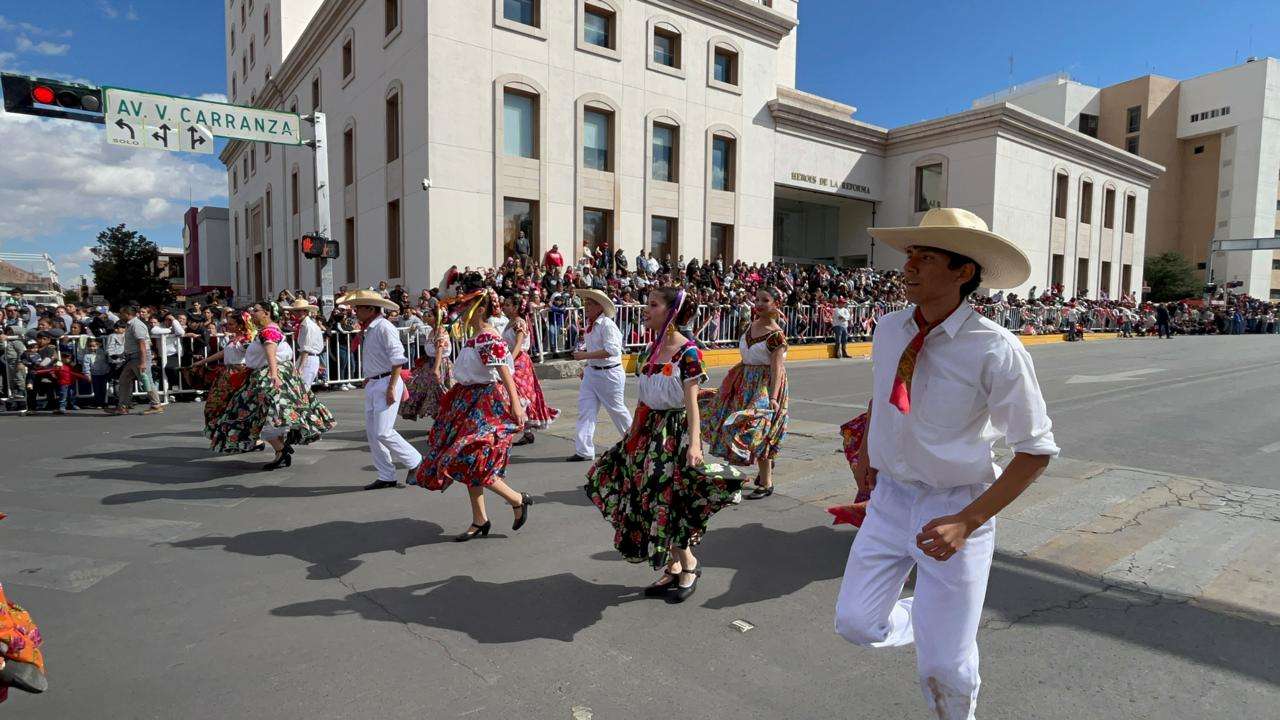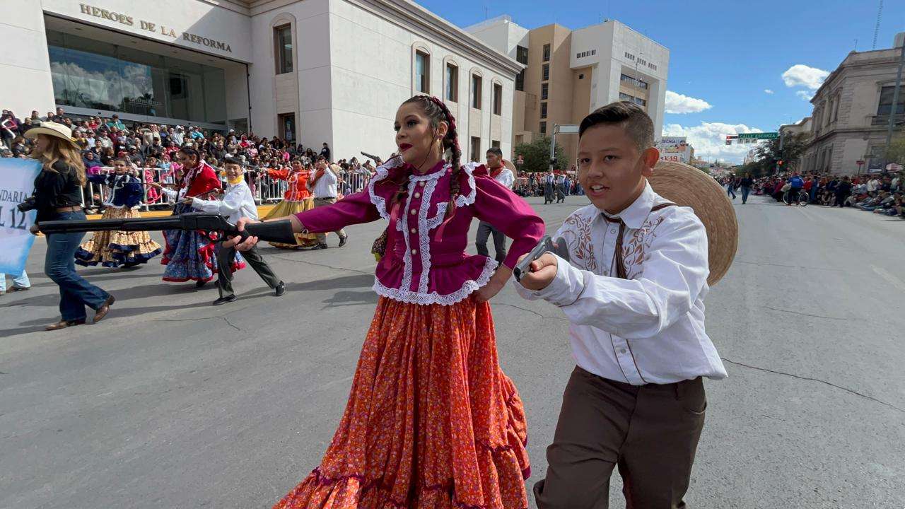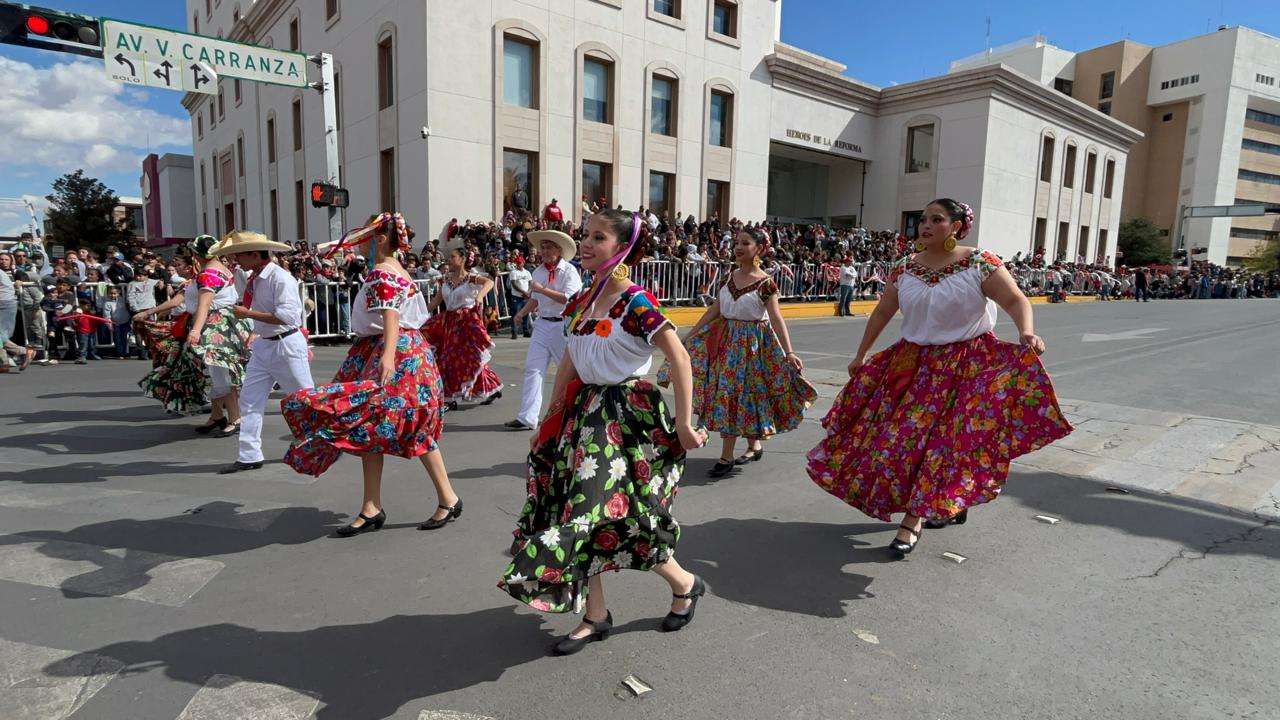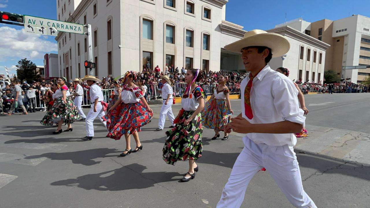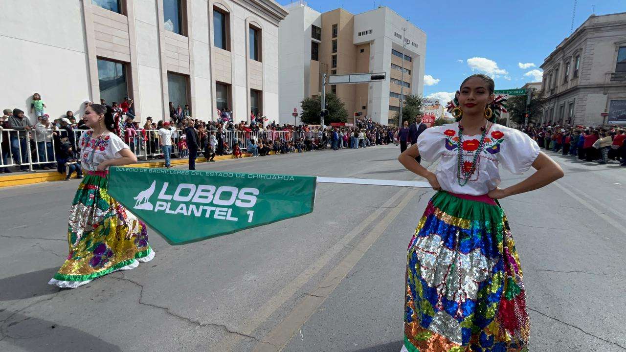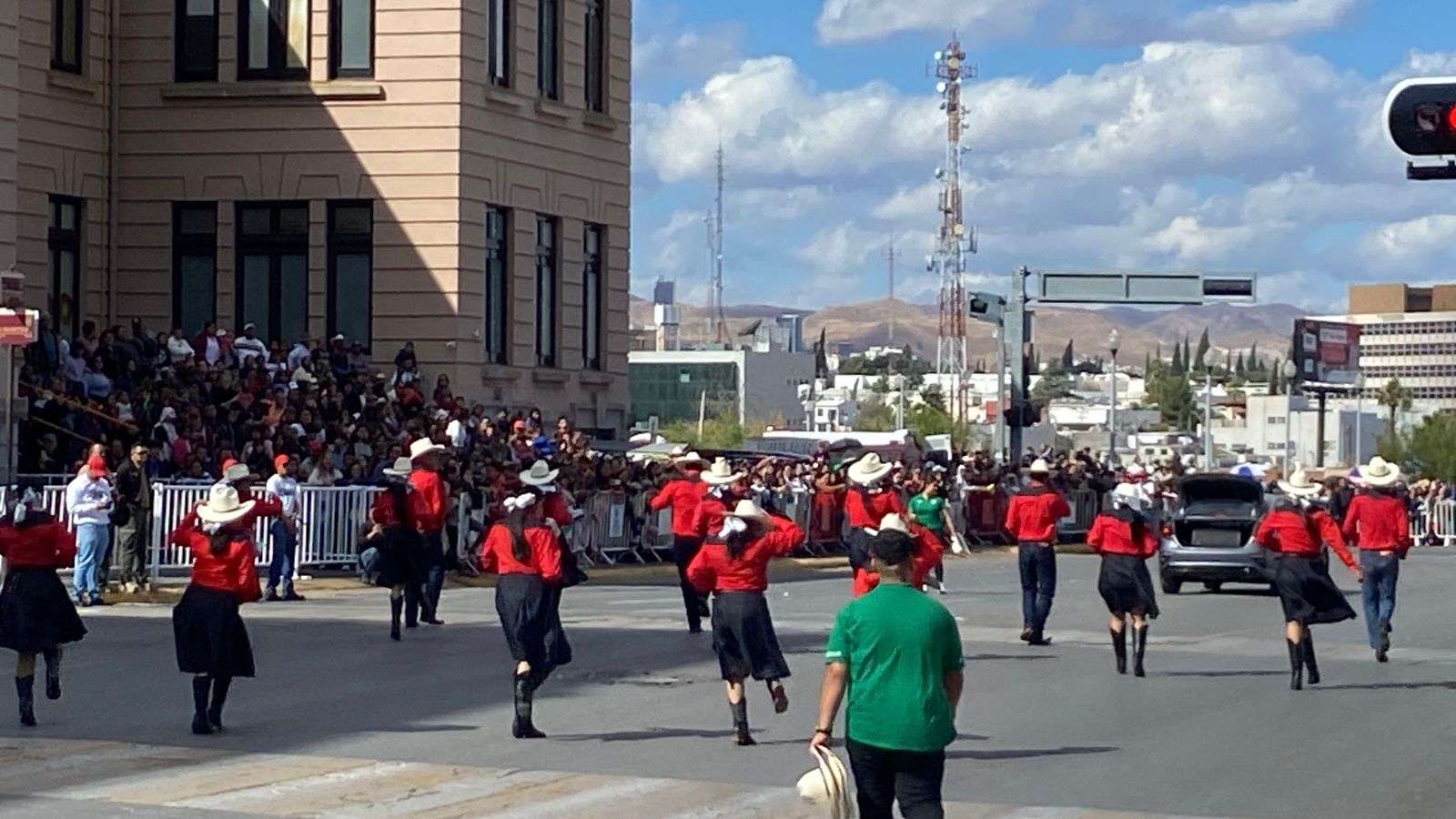 Chihuahua.- Diversas instituciones educativas participaron en el desfile con tablas rítmicas y bailables conmemorativos a la Revolución Mexicana.