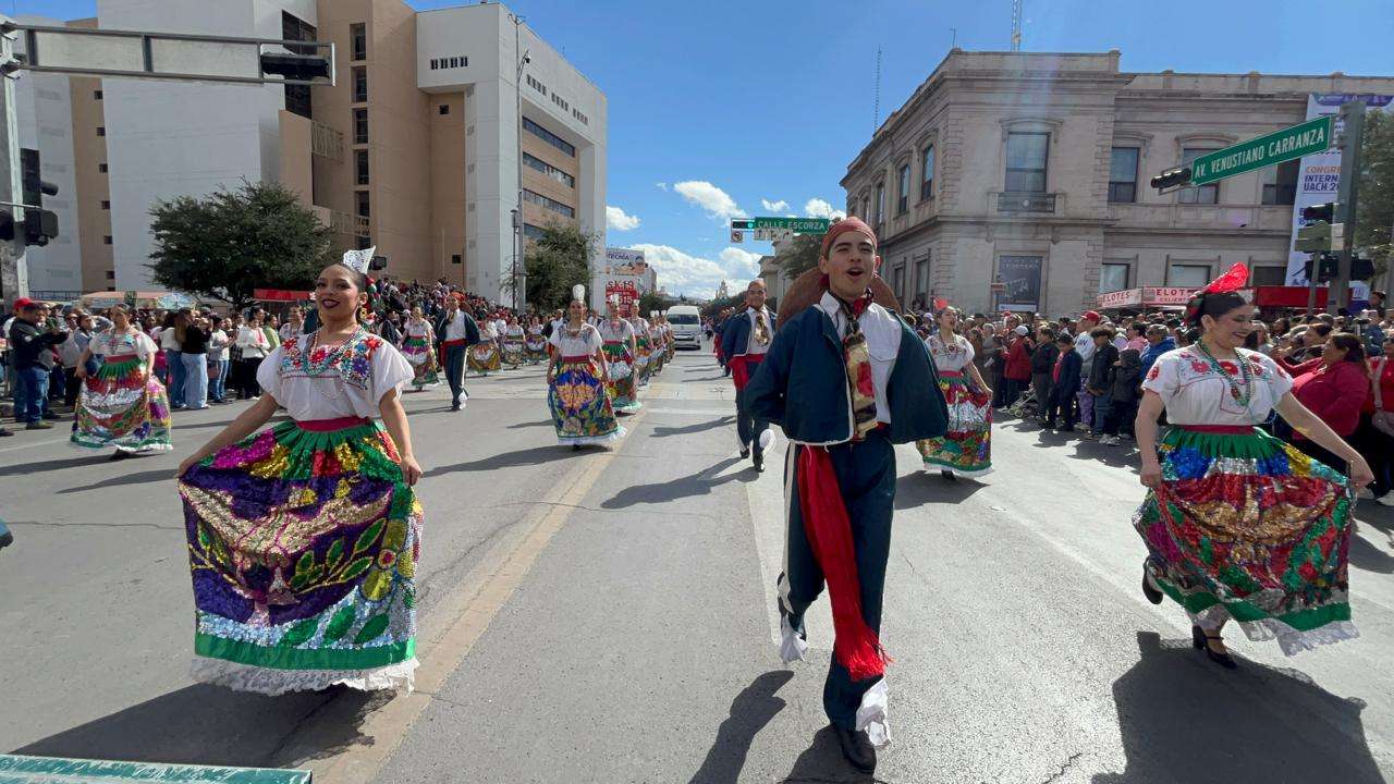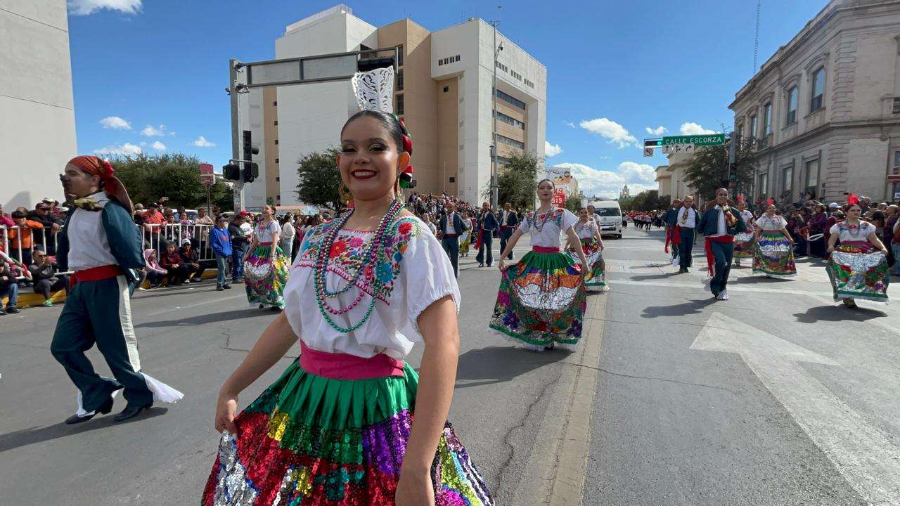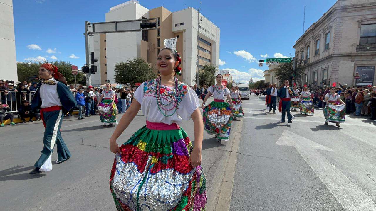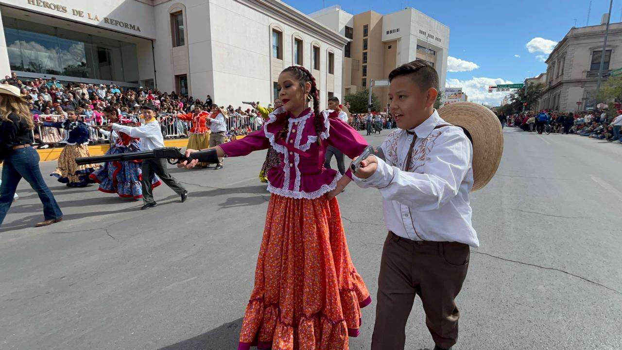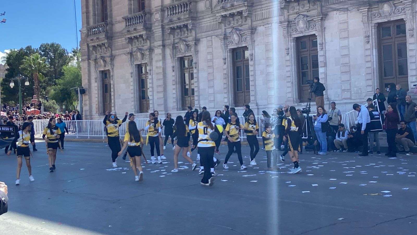 Chihuahua.- Diversas instituciones educativas participaron en el desfile con tablas rítmicas y bailables conmemorativos a la Revolución Mexicana.