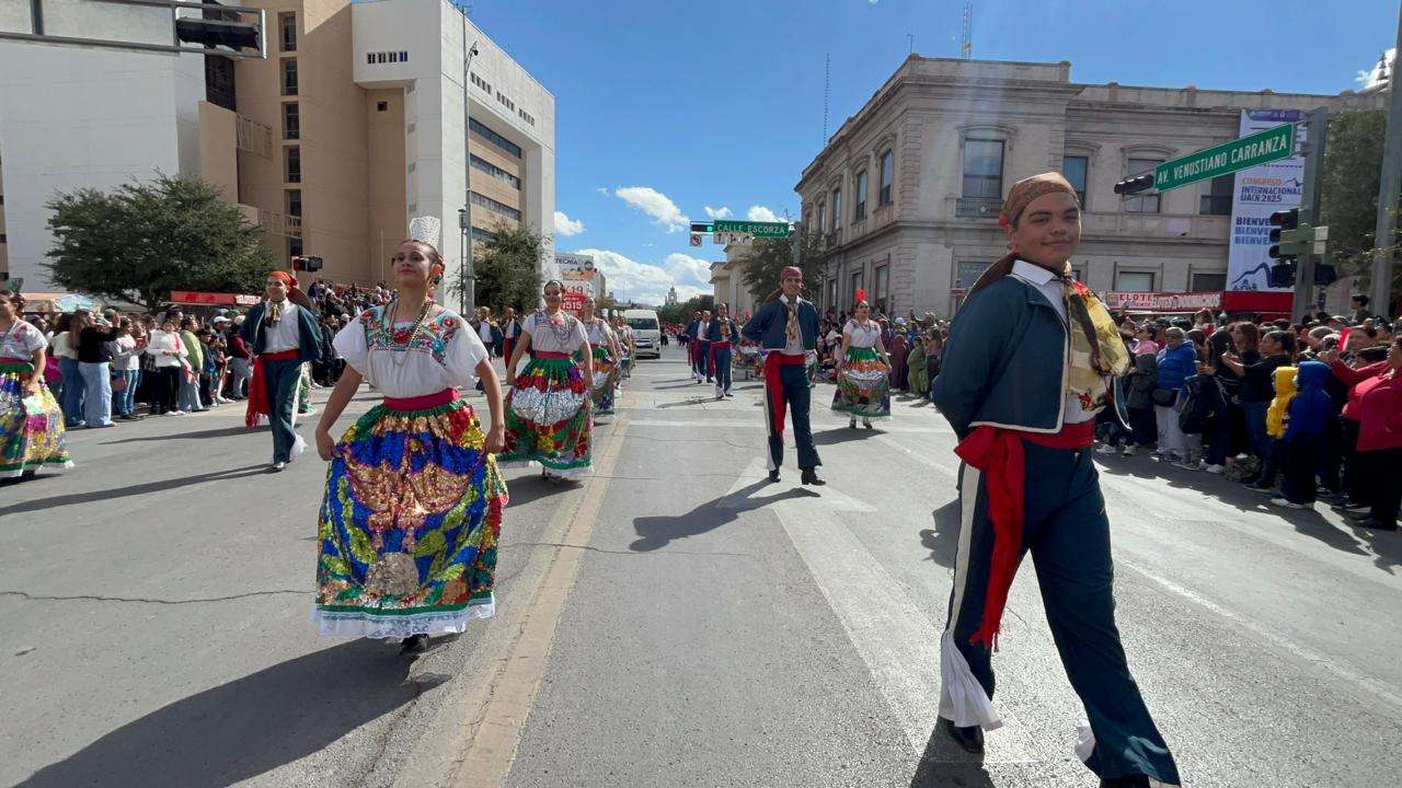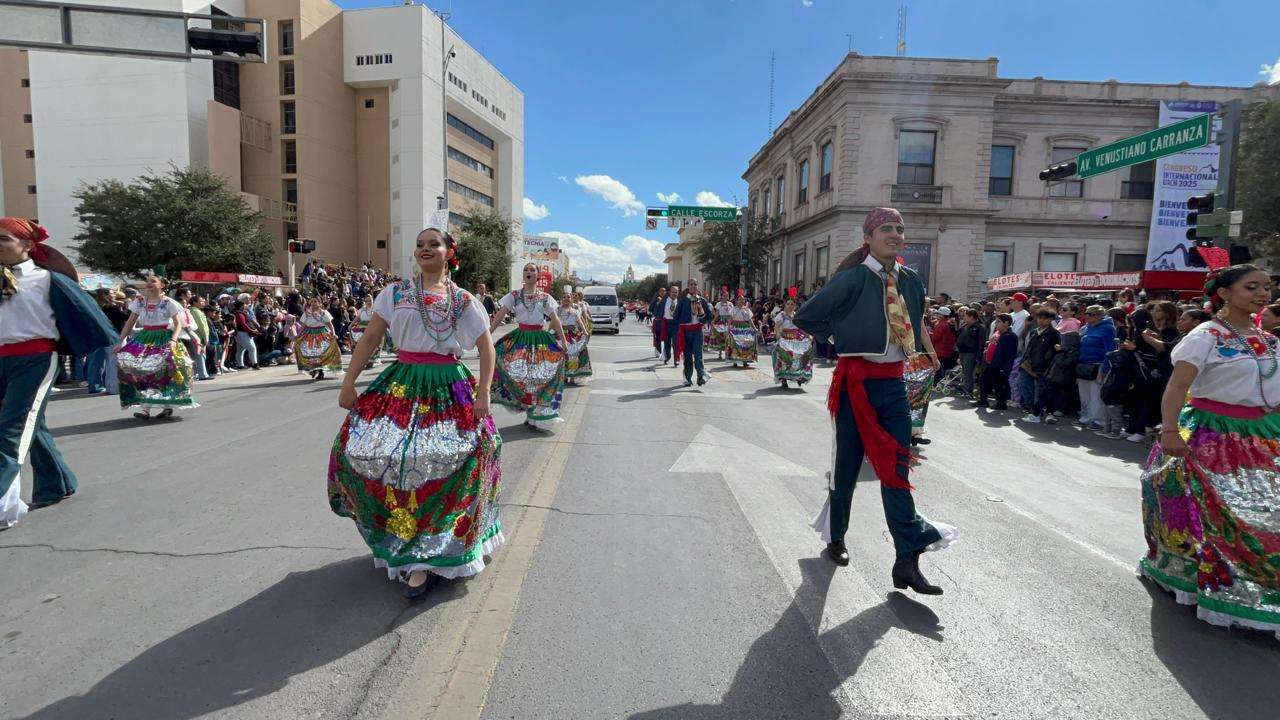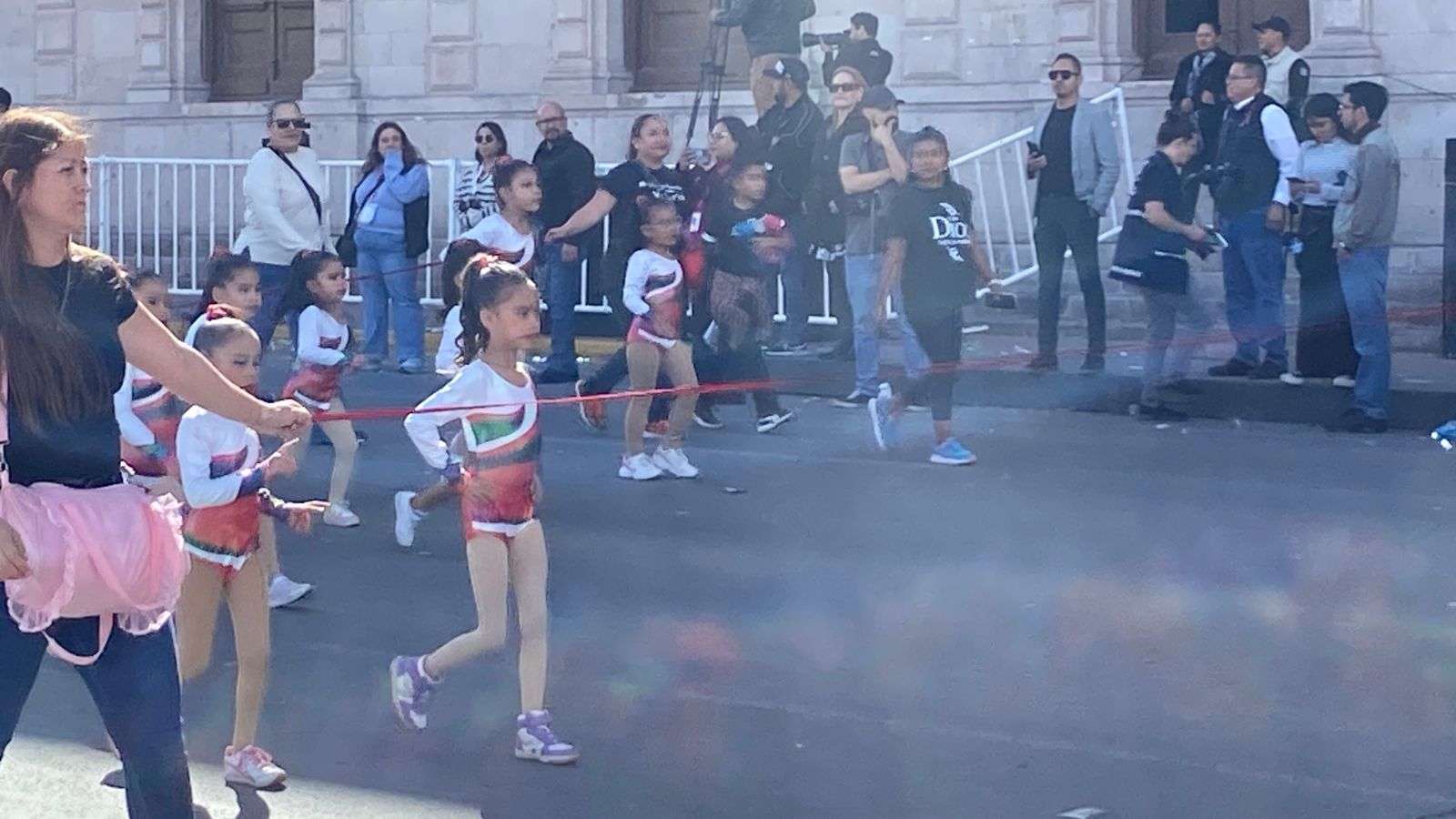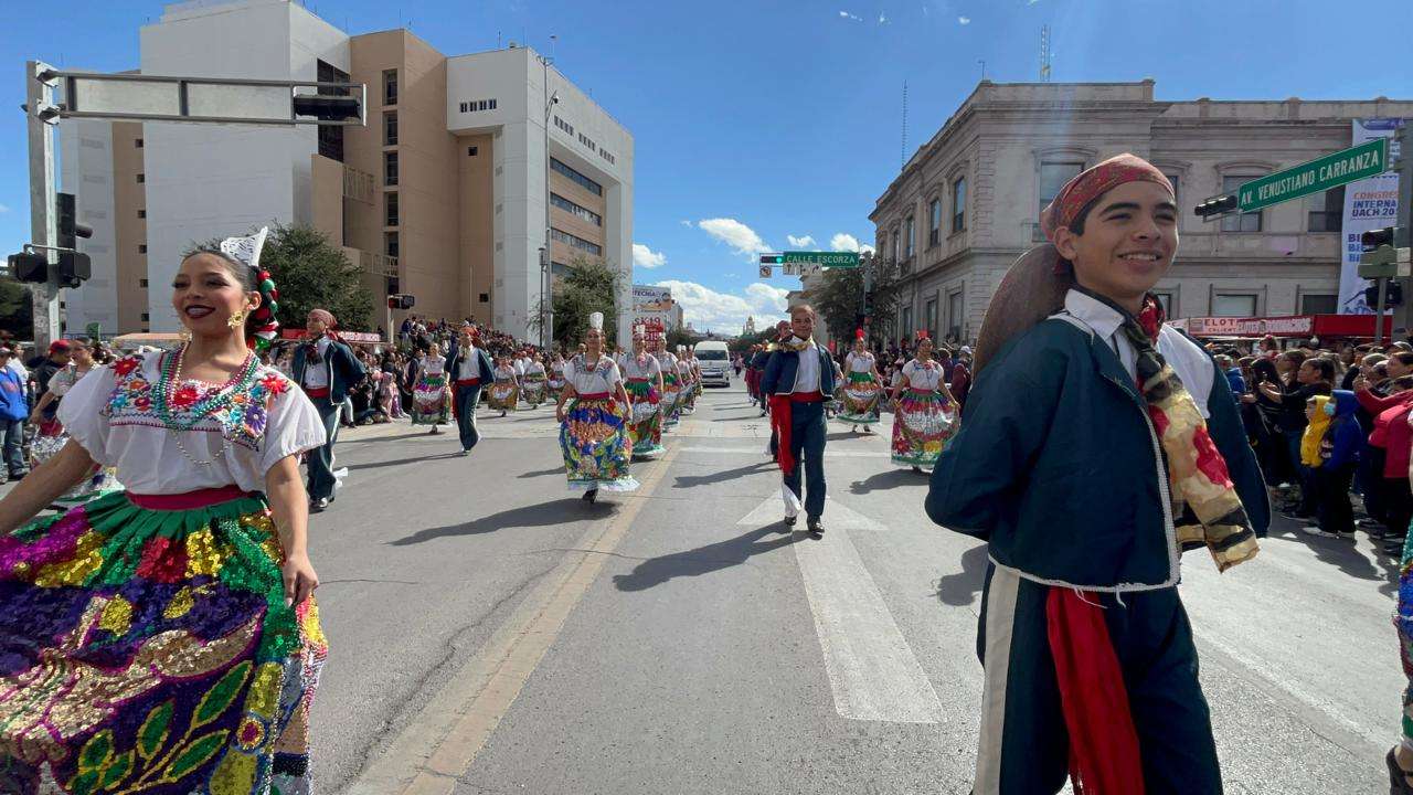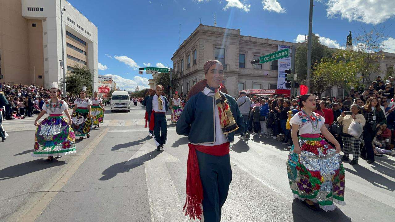 Chihuahua.- Diversas instituciones educativas participaron en el desfile con tablas rítmicas y bailables conmemorativos a la Revolución Mexicana.