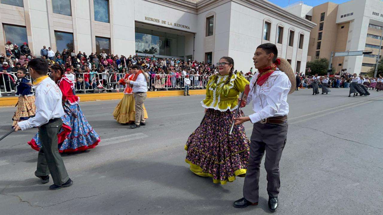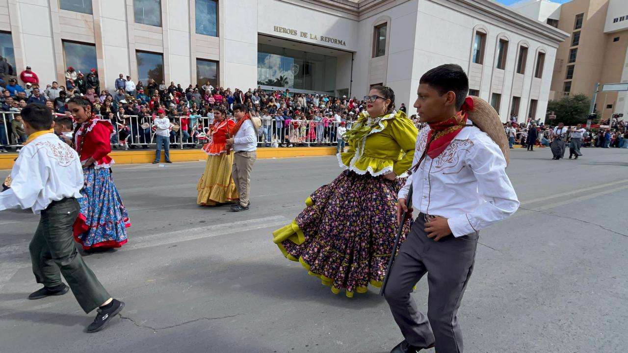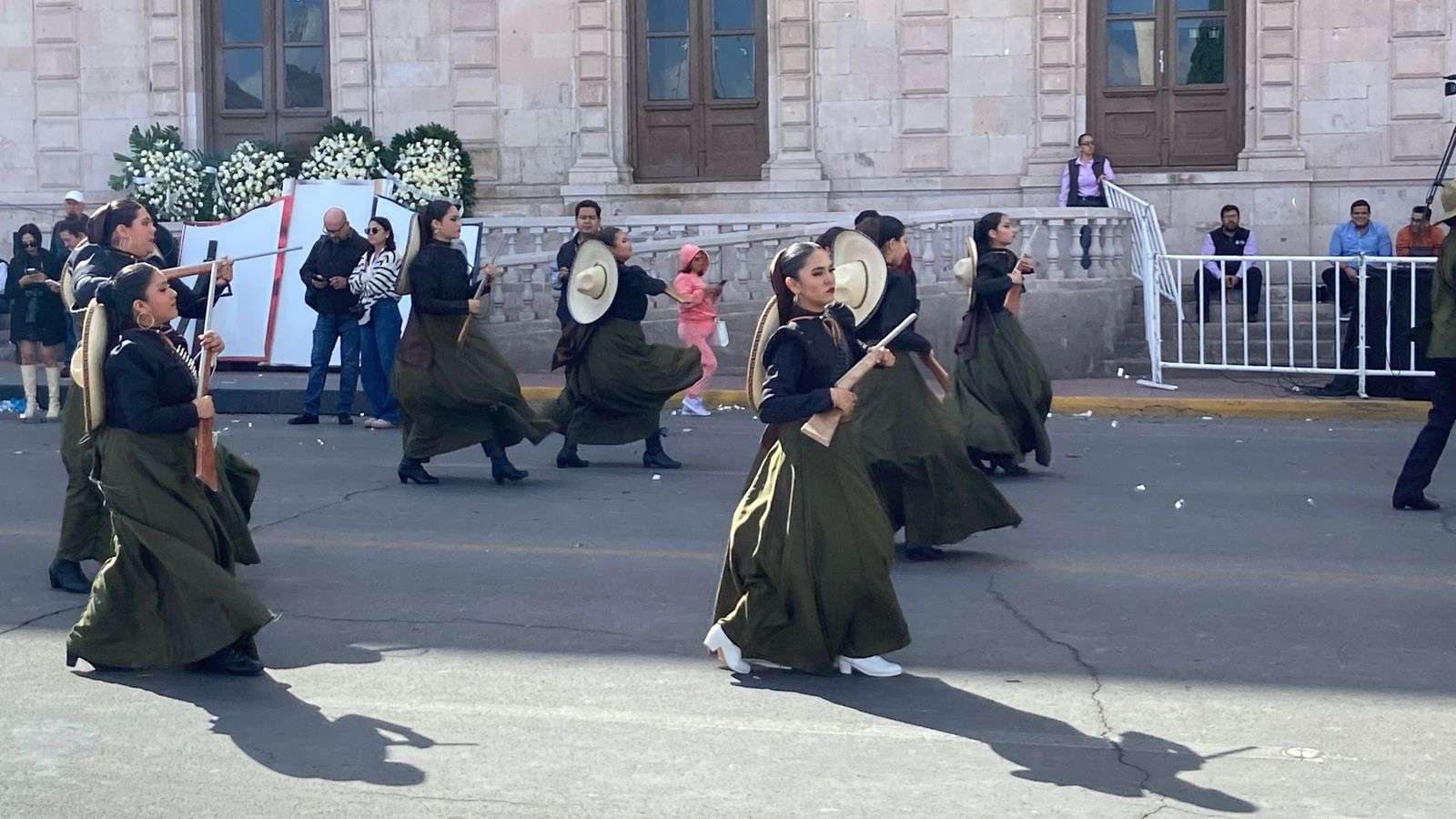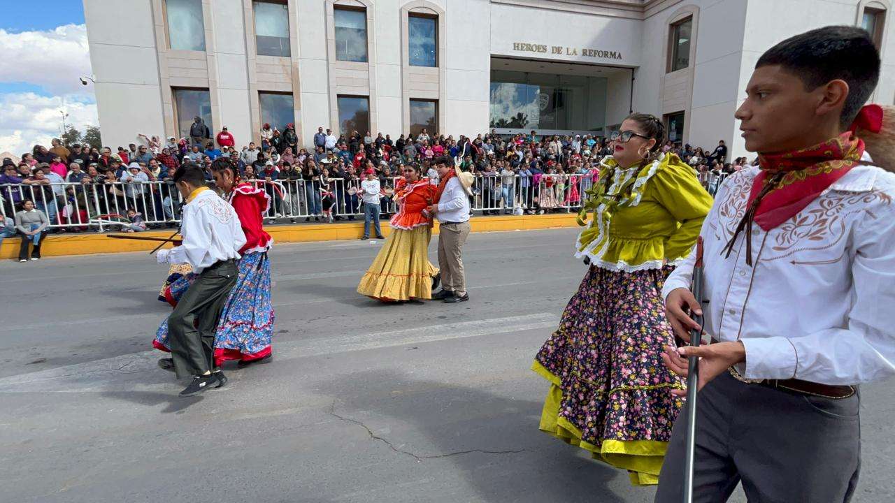 La Secundaria Técnica 61 destacó con un tradicional bailable revolucionario, mientras que la Secundaria Federal 12 también presentó una colorida representación dancística.