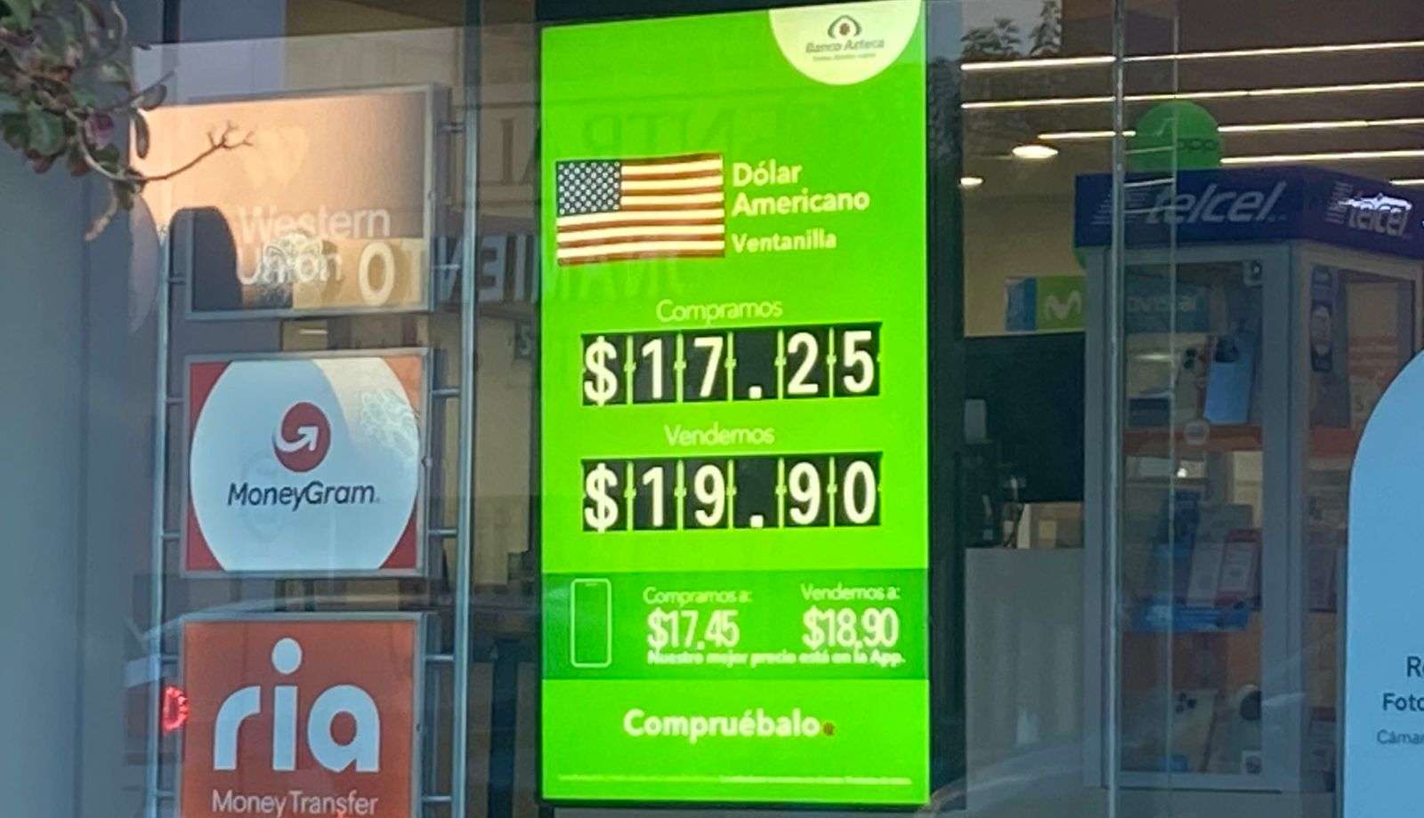 Chihuahua.- La cotización del dólar este sábado 25 de octubre, alcanzo una cotización de $19.90 a la venta y a $17.25 a la compra en ventanillas del Banco Azteca ubicada en la calle Cuarta y Aldama.