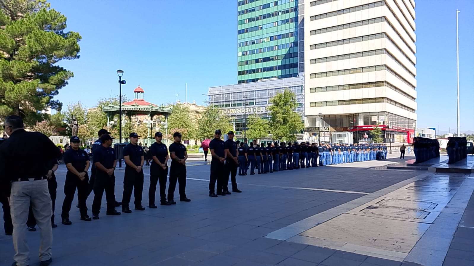 Chihuahua.- Un total de 120 cadetes, entre próximos policías y bomberos, realizaron este domingo su ensayo general frente a la Presidencia Municipal, como preparación para la ceremonia de graduación que se llevará a cabo este lunes a las 9:00 de la mañana.