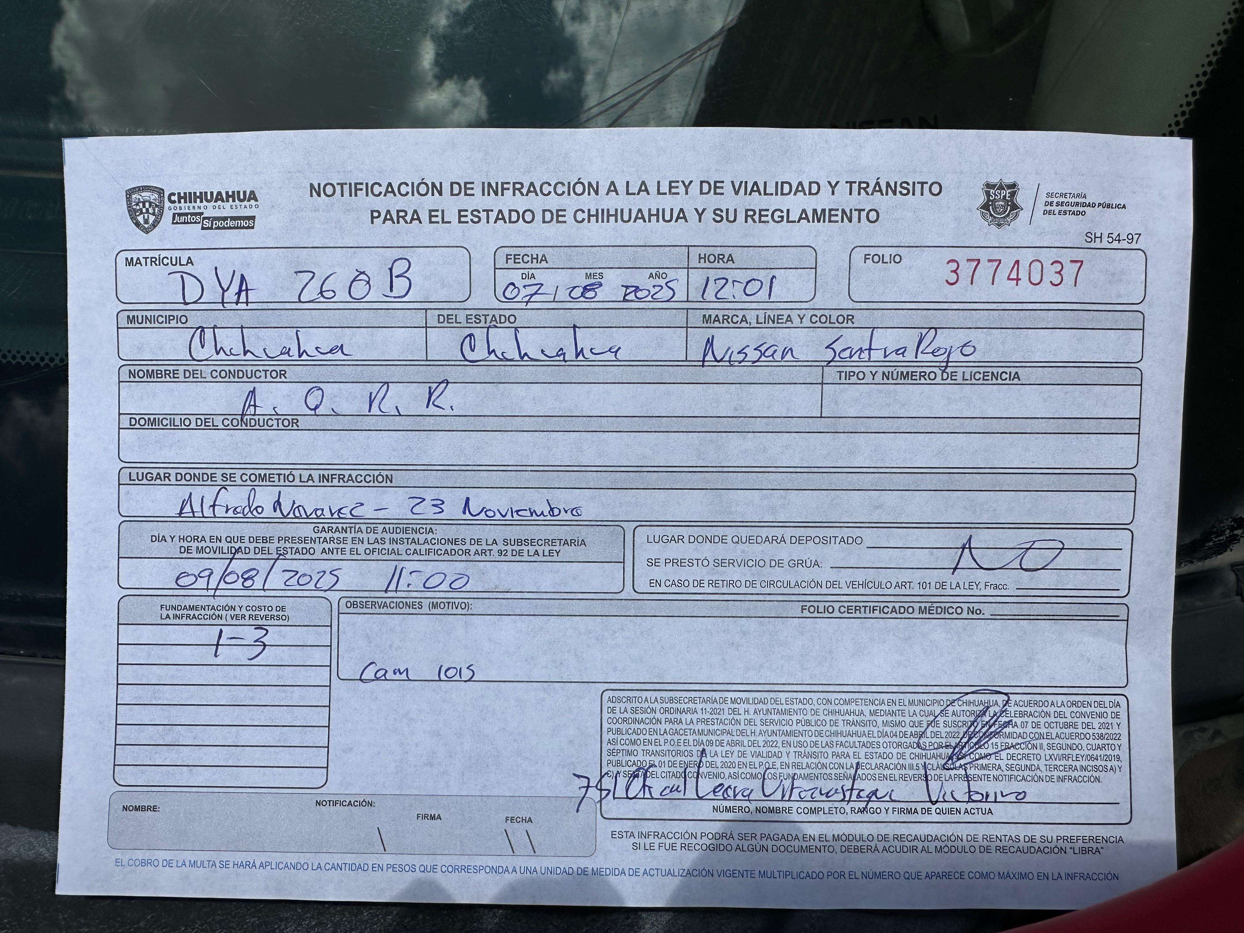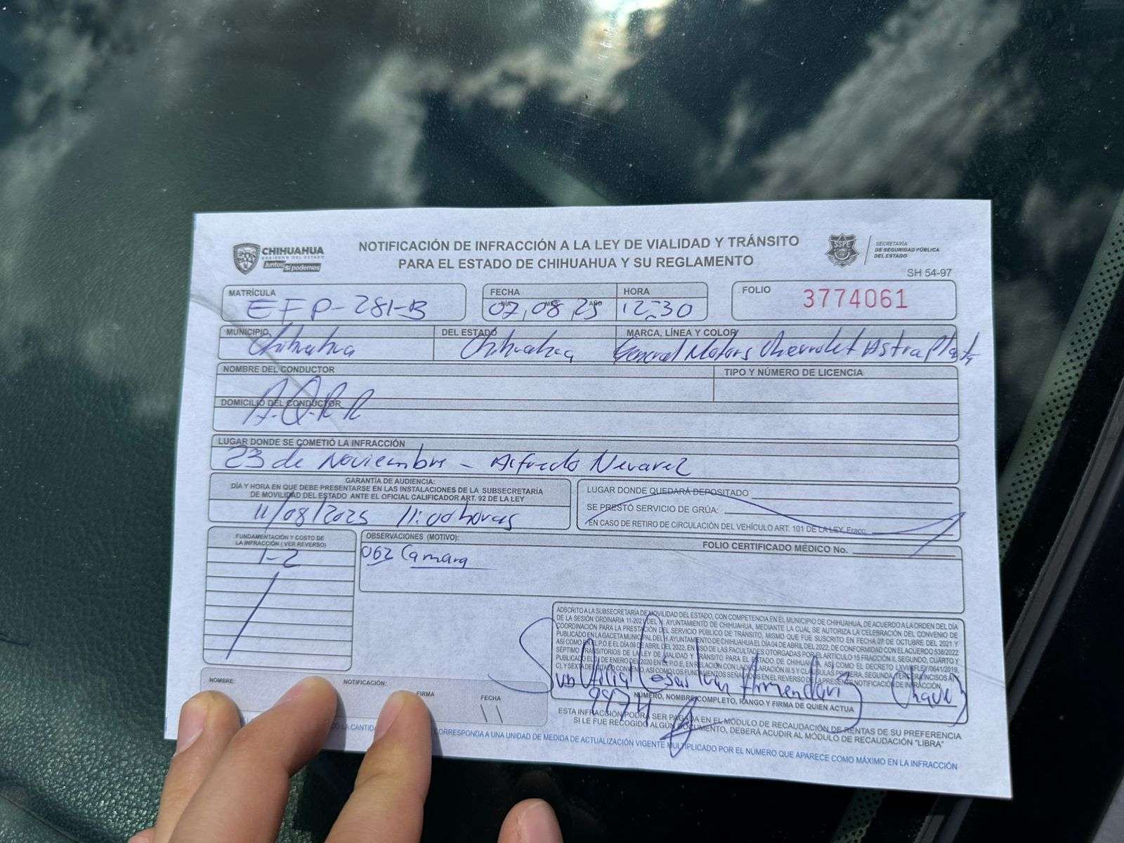 Chihuahua.– Un agente de tránsito aplicó múltiples infracciones a vehículos estacionados en las inmediaciones de la calle Alfredo Nevarez y 23 de Noviembre, una zona de oficinas y empresas.