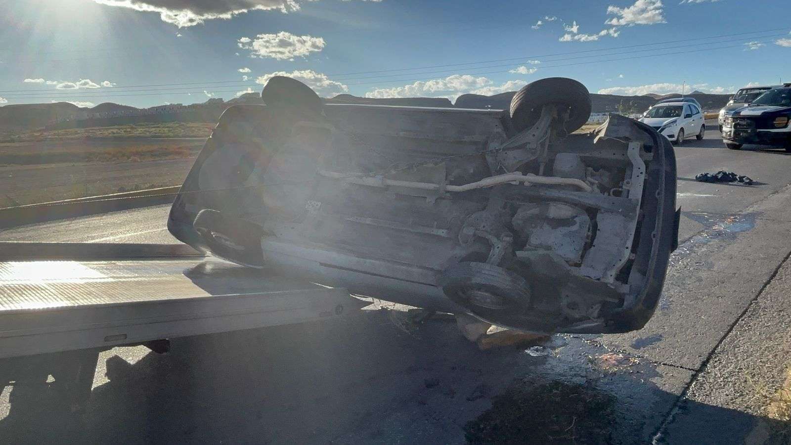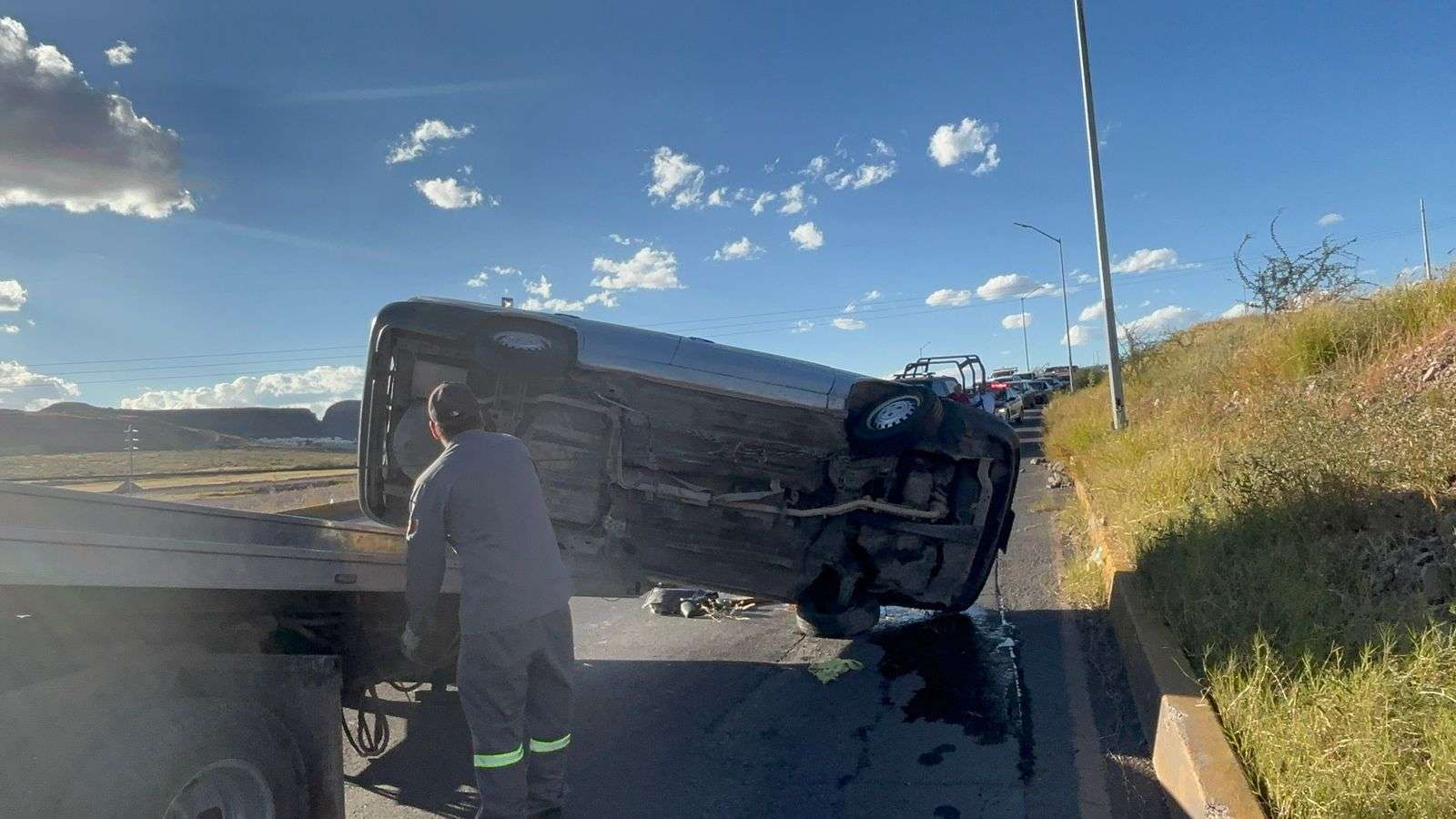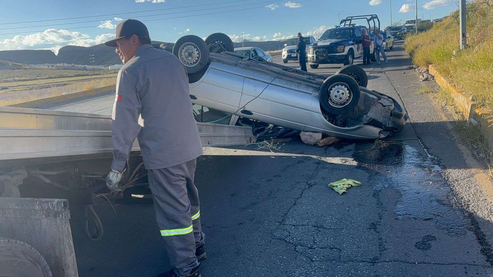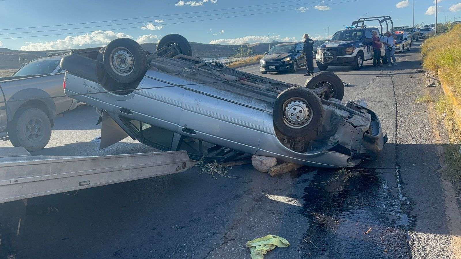 De acuerdo con agentes viales, fue el exceso de velocidad al tomar la curva, lo que le hizo perder el control y terminar volcándose en esta arteria vial al norte de la ciudad de Chihuahua.