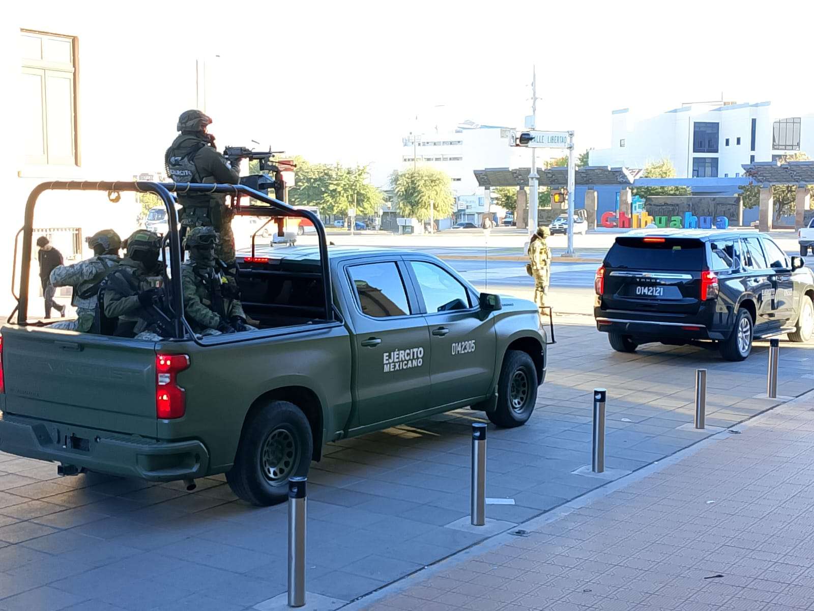 El Palacio de Gobierno permaneció bajo resguardo de elementos de la Secretaría de la Defensa Nacional, la Guardia Nacional, la Secretaría de Seguridad Pública Estatal y la Fiscalía General del Estado.