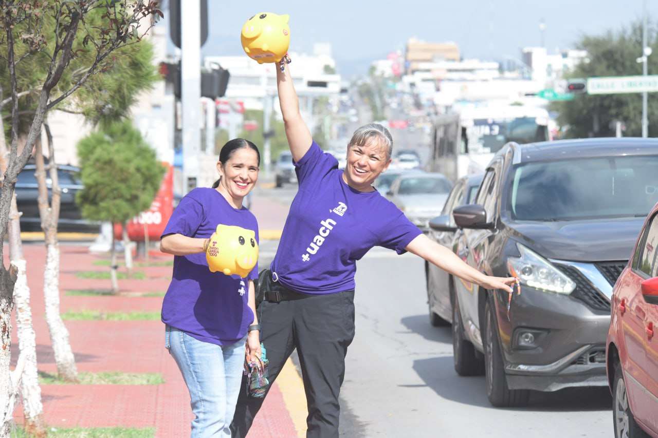 Chihuahua.- La Universidad Autónoma de Chihuahua (UACH) se unió a las actividades de la Colecta Teletón 2025 con un boteo en el cruce de las avenidas Venustiano Carranza y Escorza, donde participaron estudiantes, docentes y personal universitario.