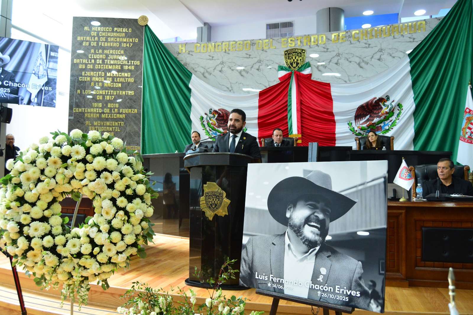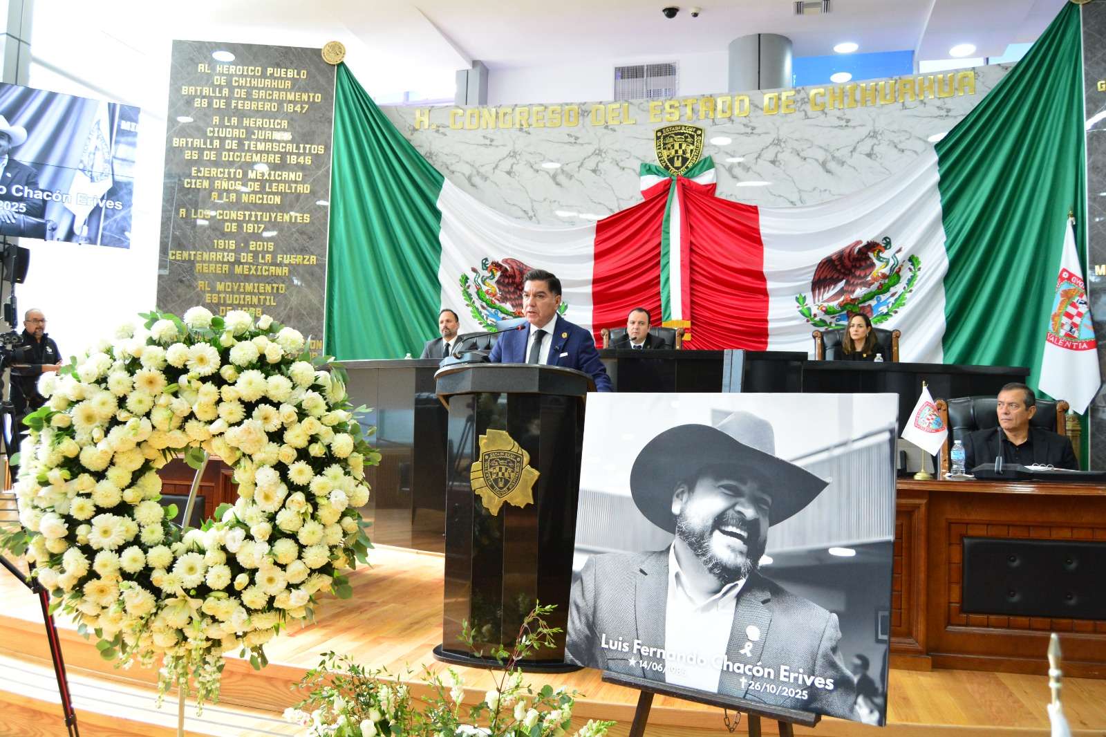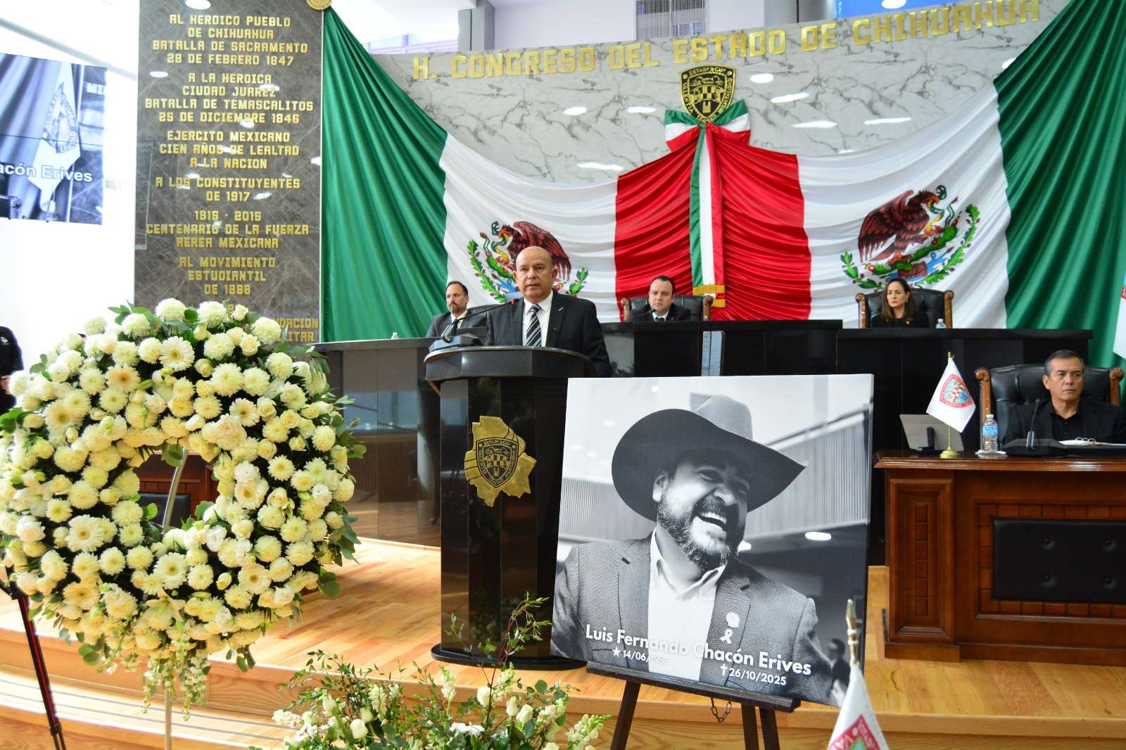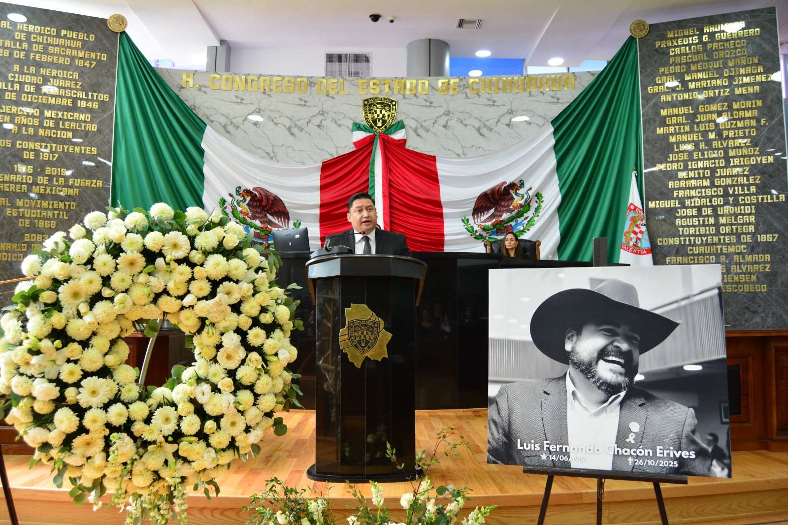 Borunda recordó que, pese a las diferencias políticas que caracterizan la vida parlamentaria, Chacón Erives supo ganarse el respeto y cariño de todas las fuerzas políticas: “Momentos como el luto de hoy nos recuerdan que las diferencias son parte de la vida parlamentaria. Aquí debatimos, discutimos y defendemos ideas distintas, porque esa es la riqueza de la democracia. Pero hay personas que trascienden los colores partidistas y una de ellas fue sin duda Luis Fernando Chacón”.