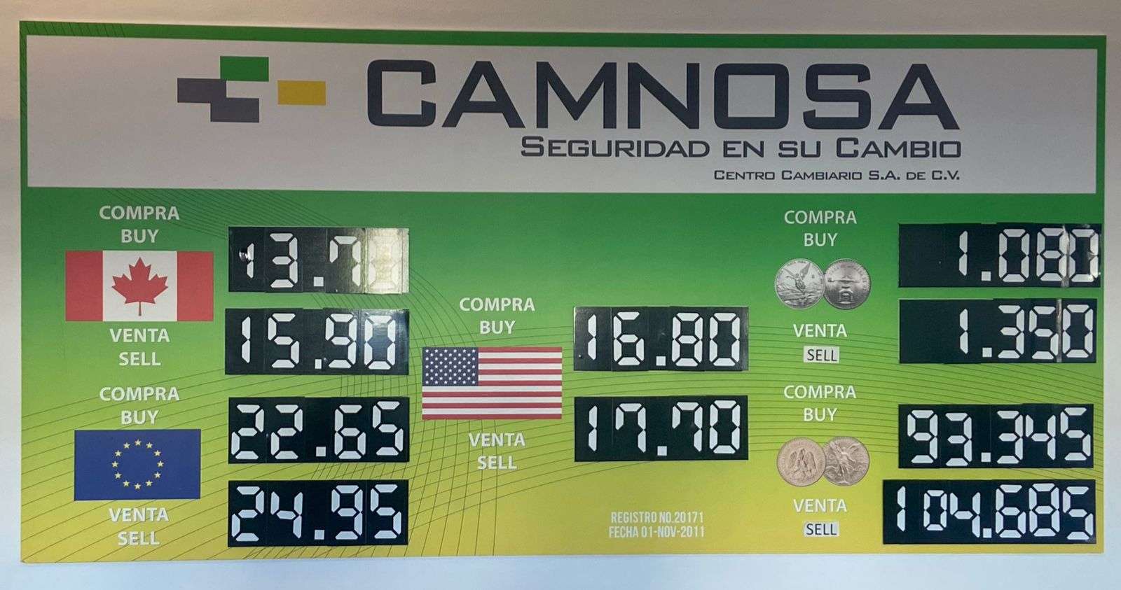 Por su parte, el dólar estadounidense en ventanillas de la casa de cambio Camnosa, ubicada en la calle Aldama, casi esquina con Ocampo, cotizó en $17.60 a la venta y $16.80 a la compra.