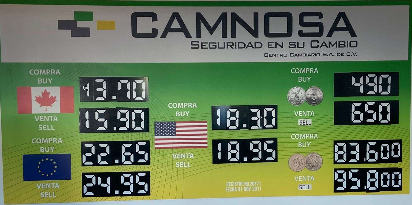 Por otro lado, en la casa de cambio Camnosa, ubicada en la calle Aldama, casi en Ocampo, el dólar se ofreció a $18.95 a la venta y $18.30 a la compra.