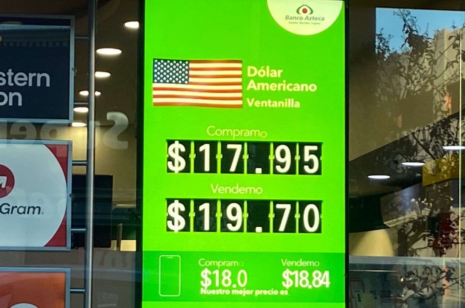Chihuahua.- El dólar se cotizó en $19.70 a la venta y $17.95 a la compra en las ventanillas de Banco Azteca ubicadas en la calle Cuarta y Aldama.