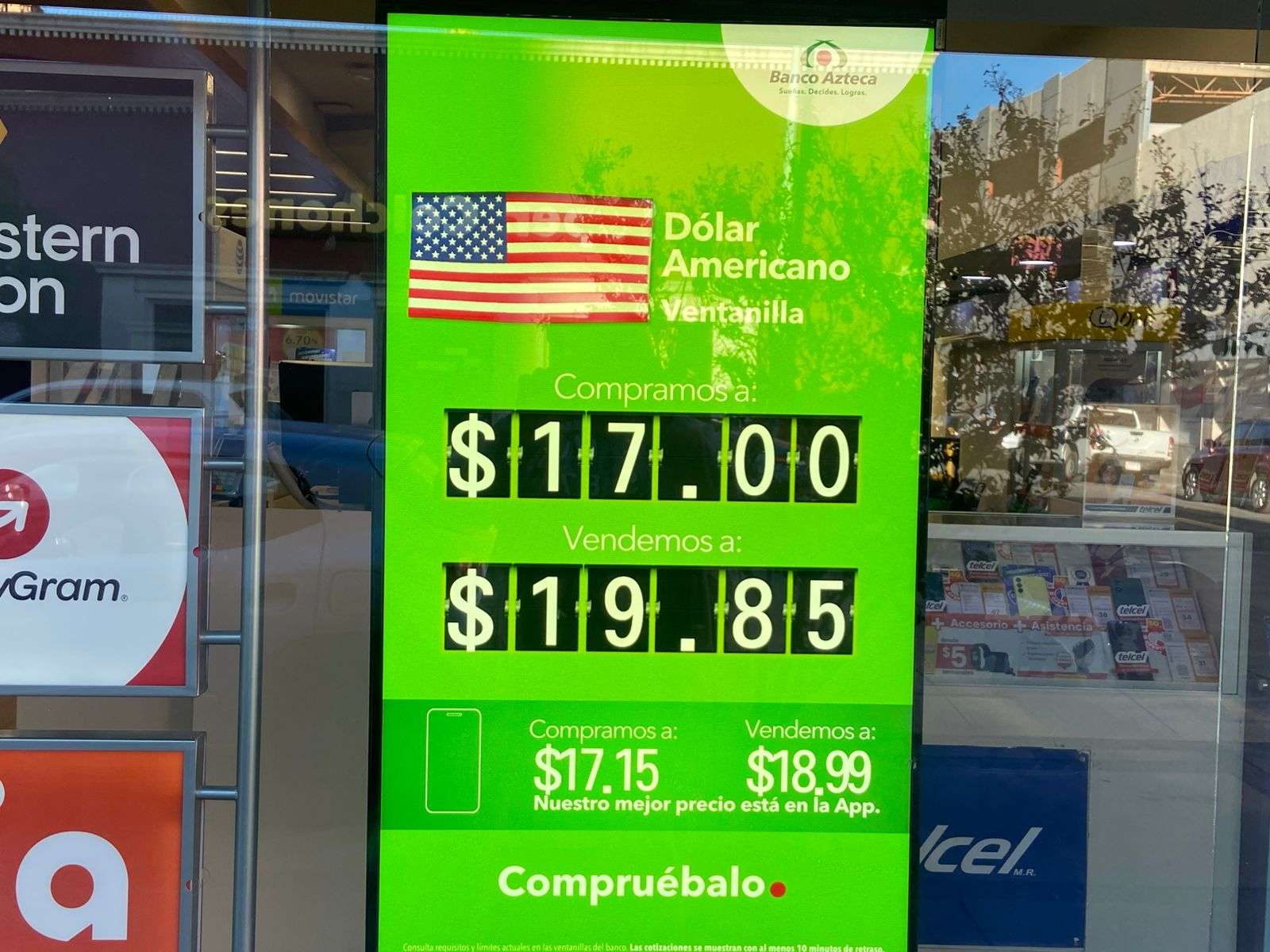 Chihuahua.- El dólar para este lunes 17 de noviembre cotizó a $19.85 a la venta y a $17.00 a la compra en las ventanillas del Banco Azteca, ubicadas en la calle Cuarta y Aldama.