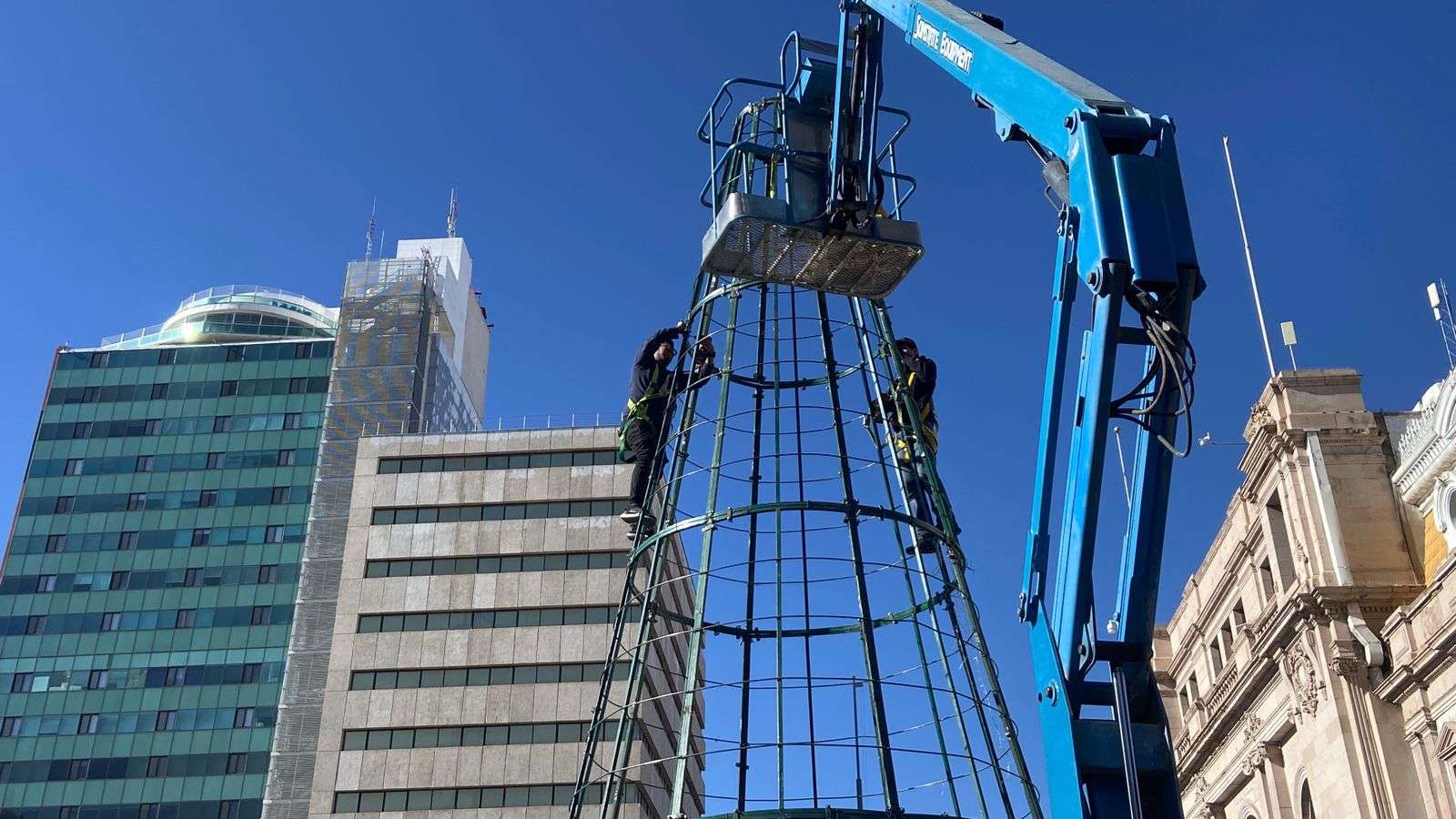 Chihuahua.– La cuadrilla de trabajadores que desde ayer realiza el desmontaje del árbol navideño continúa con las labores, por lo que la Plaza de Armas está próxima a quedar completamente despejada.
