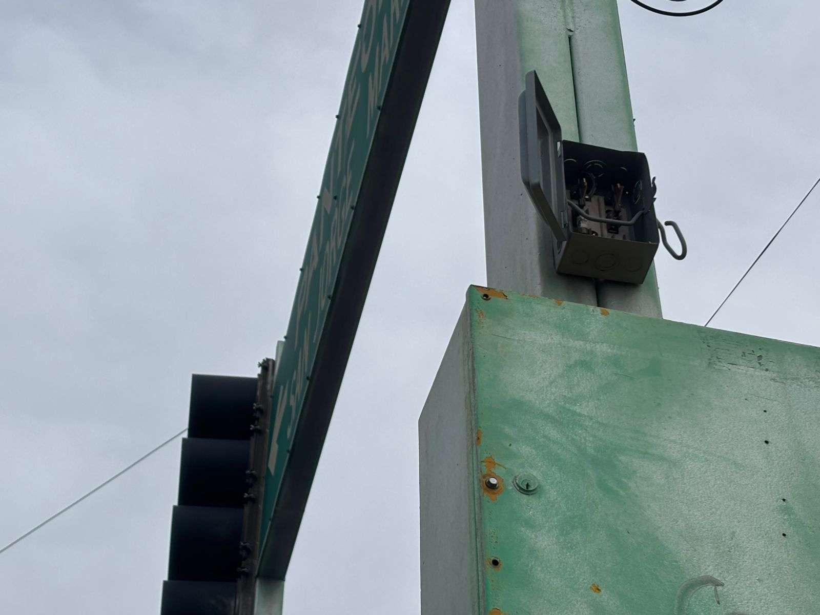 Chihuahua, Chih.- A más de una semana de que una unidad de la Dirección de Seguridad Pública Municipal (DSPM) derribara la base de un semáforo en el cruce de la Vialidad Ch-P y calle Justiniani, los señalamientos permanecen sin ser reparados.