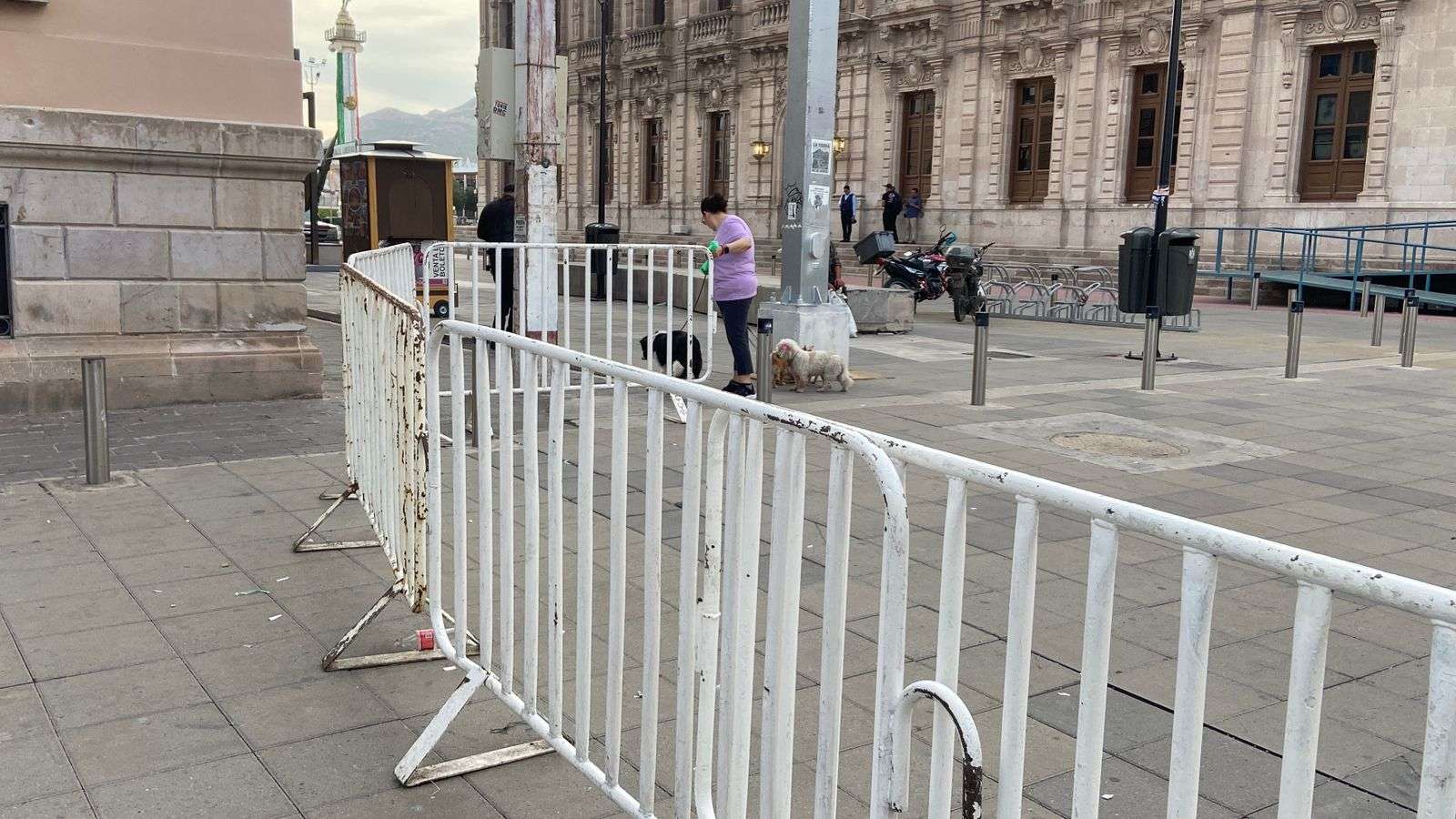 Las vallas permanecen colocadas desde la avenida Juárez hasta la calle Aldama, abarcando una extensión considerable que limita el libre paso de los transeúntes que transitan a diario por el centro.